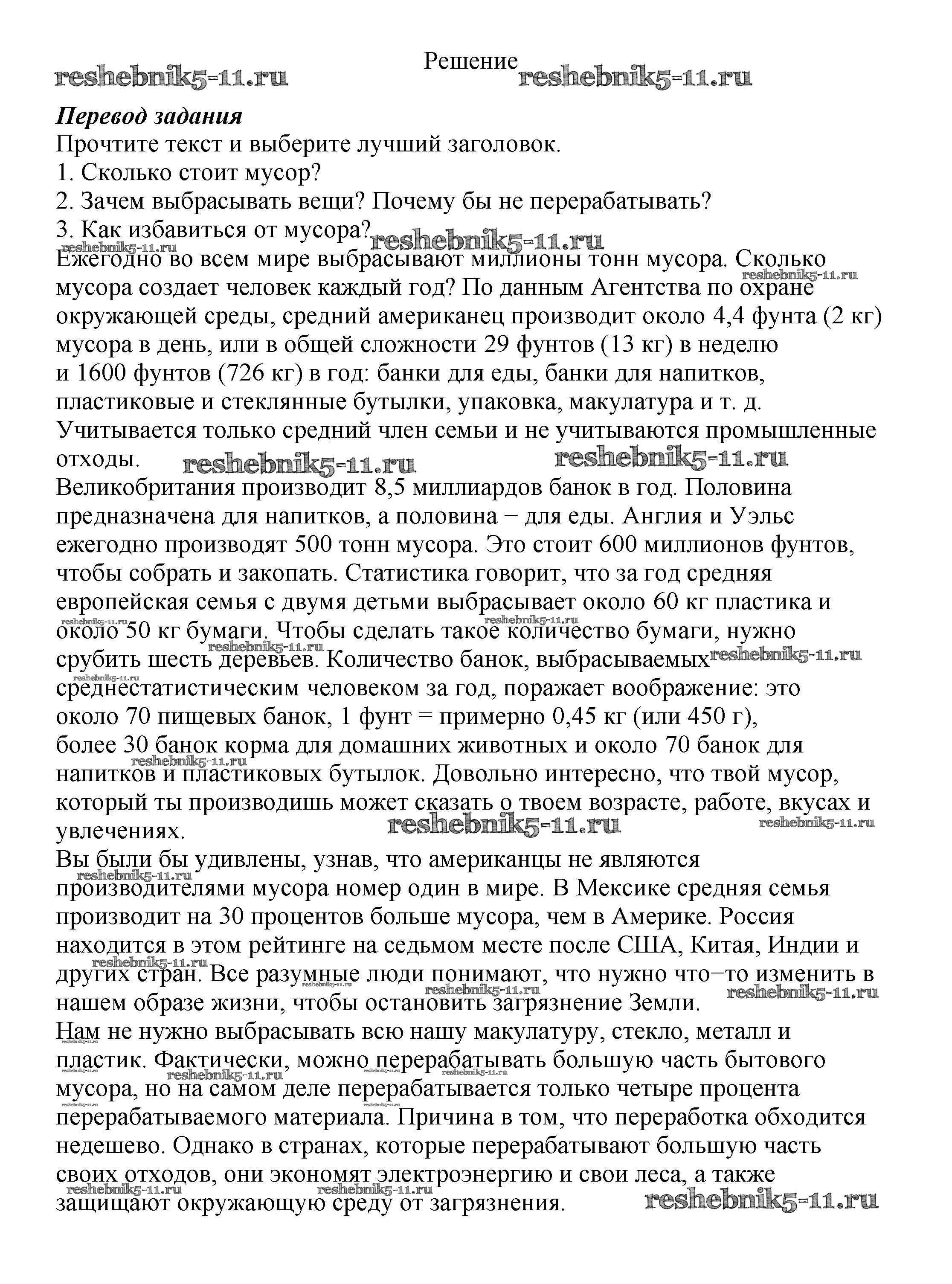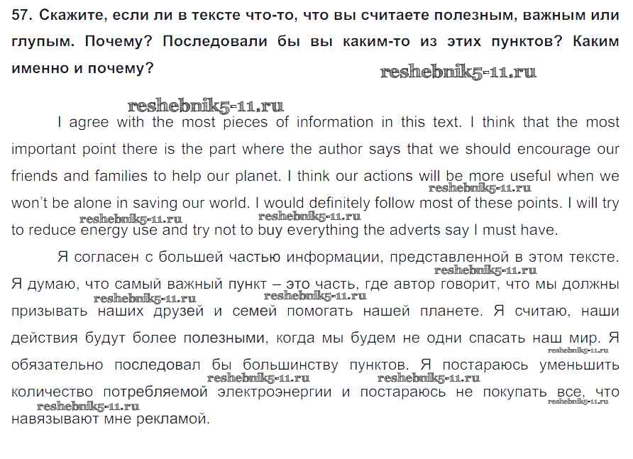 Готовая домашняя работа с ответами по Английскому языку за 8 класс Биболетова, Трубанева Учебник Enjoy English Титул 2015 ФГОС - Section 5. What can we do to save the Earth? 57