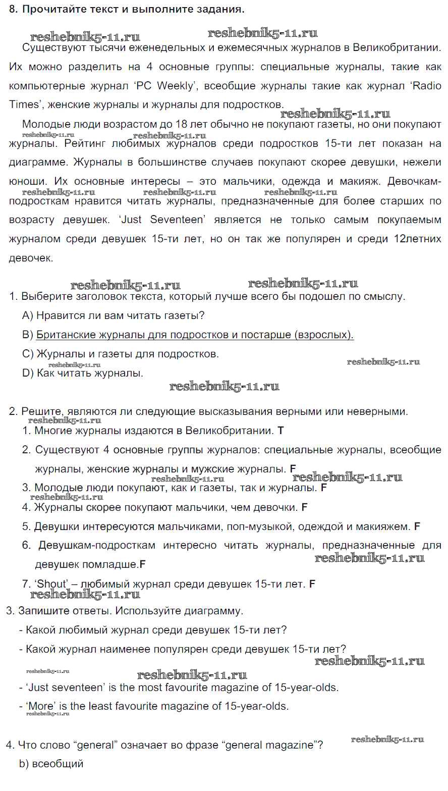 Готовая домашняя работа с ответами по Английскому языку за 8 класс Биболетова, Трубанева Учебник Enjoy English Титул 2015 ФГОС - Progress check 8