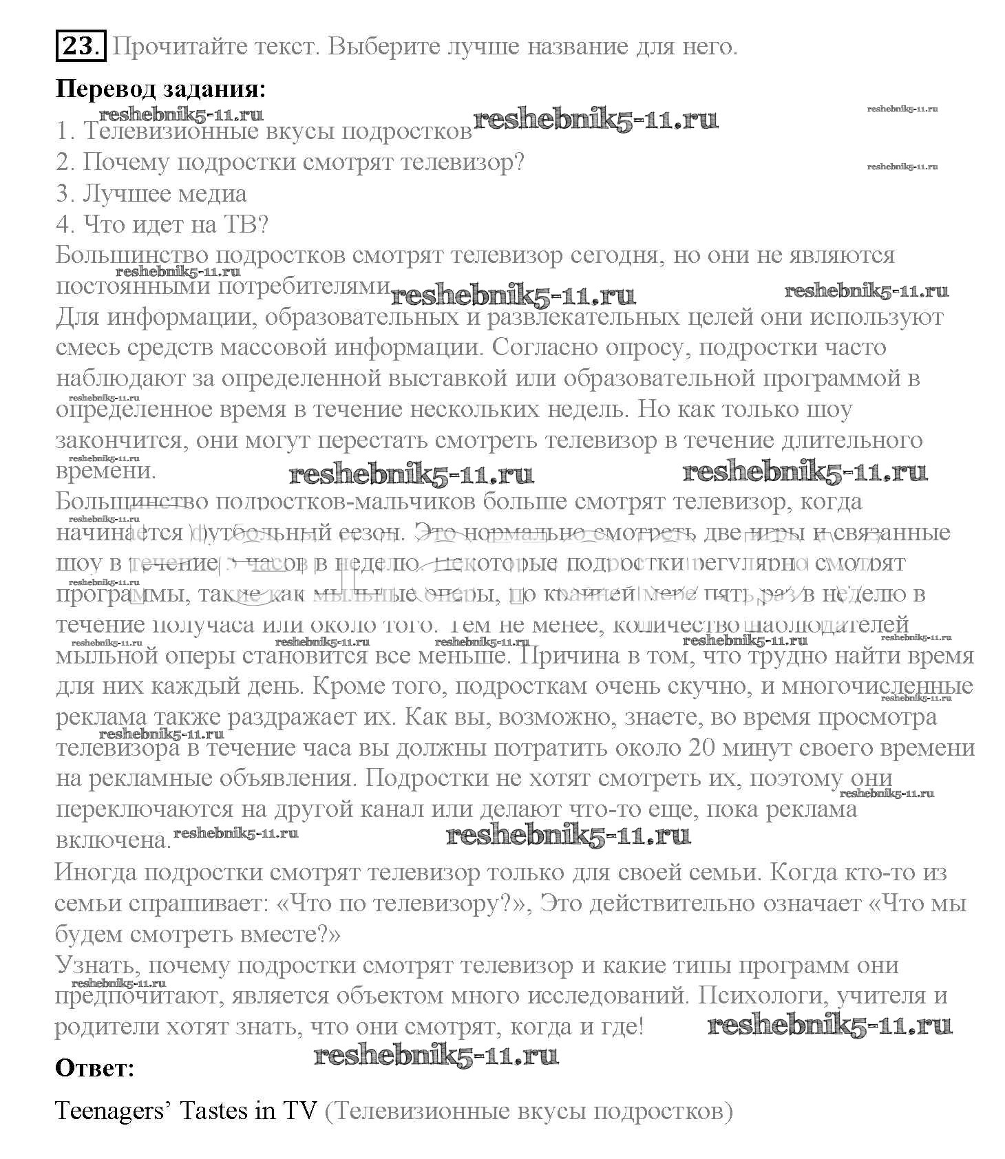 Готовая домашняя работа с ответами по Английскому языку за 8 класс Биболетова, Трубанева Учебник Enjoy English Титул 2015 ФГОС - Section 2. What do you think of television? 23