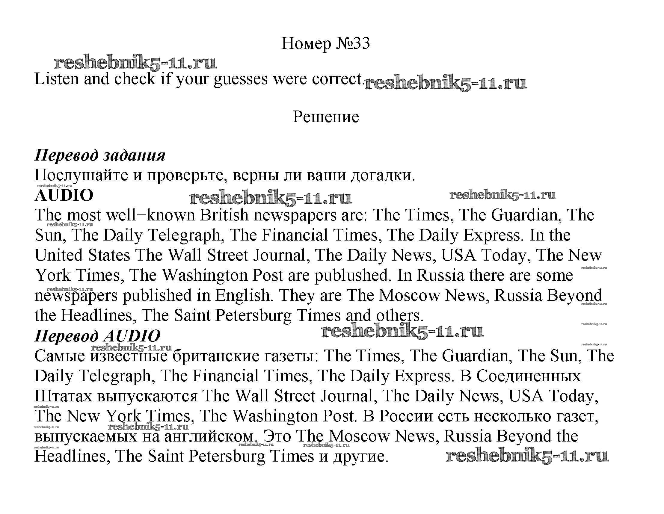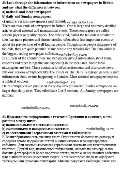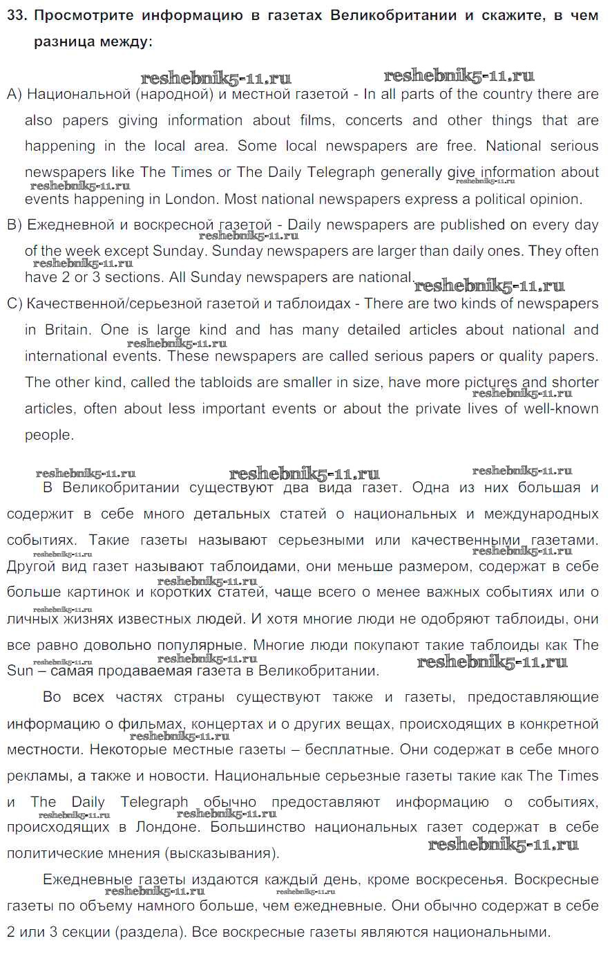 Готовая домашняя работа с ответами по Английскому языку за 8 класс Биболетова, Трубанева Учебник Enjoy English Титул 2015 ФГОС - Section 3. Do you read newspapers on Sundays? 33