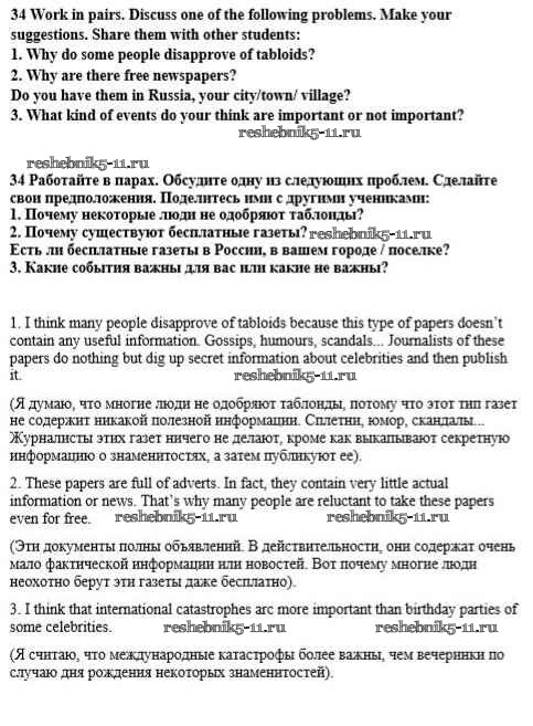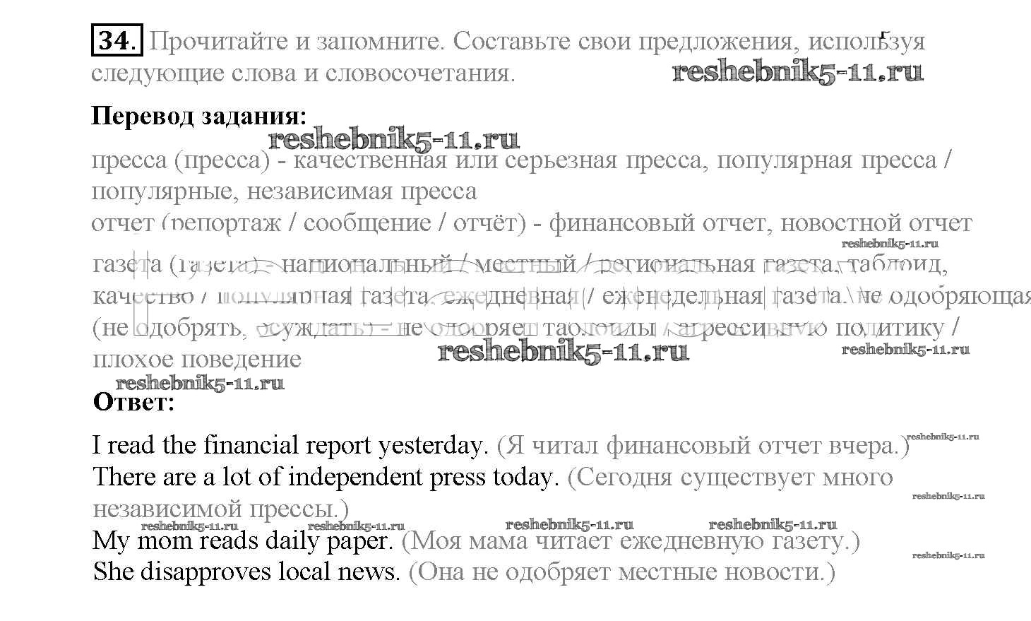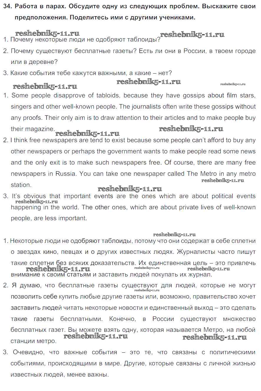 Готовая домашняя работа с ответами по Английскому языку за 8 класс Биболетова, Трубанева Учебник Enjoy English Титул 2015 ФГОС - Section 3. Do you read newspapers on Sundays? 34