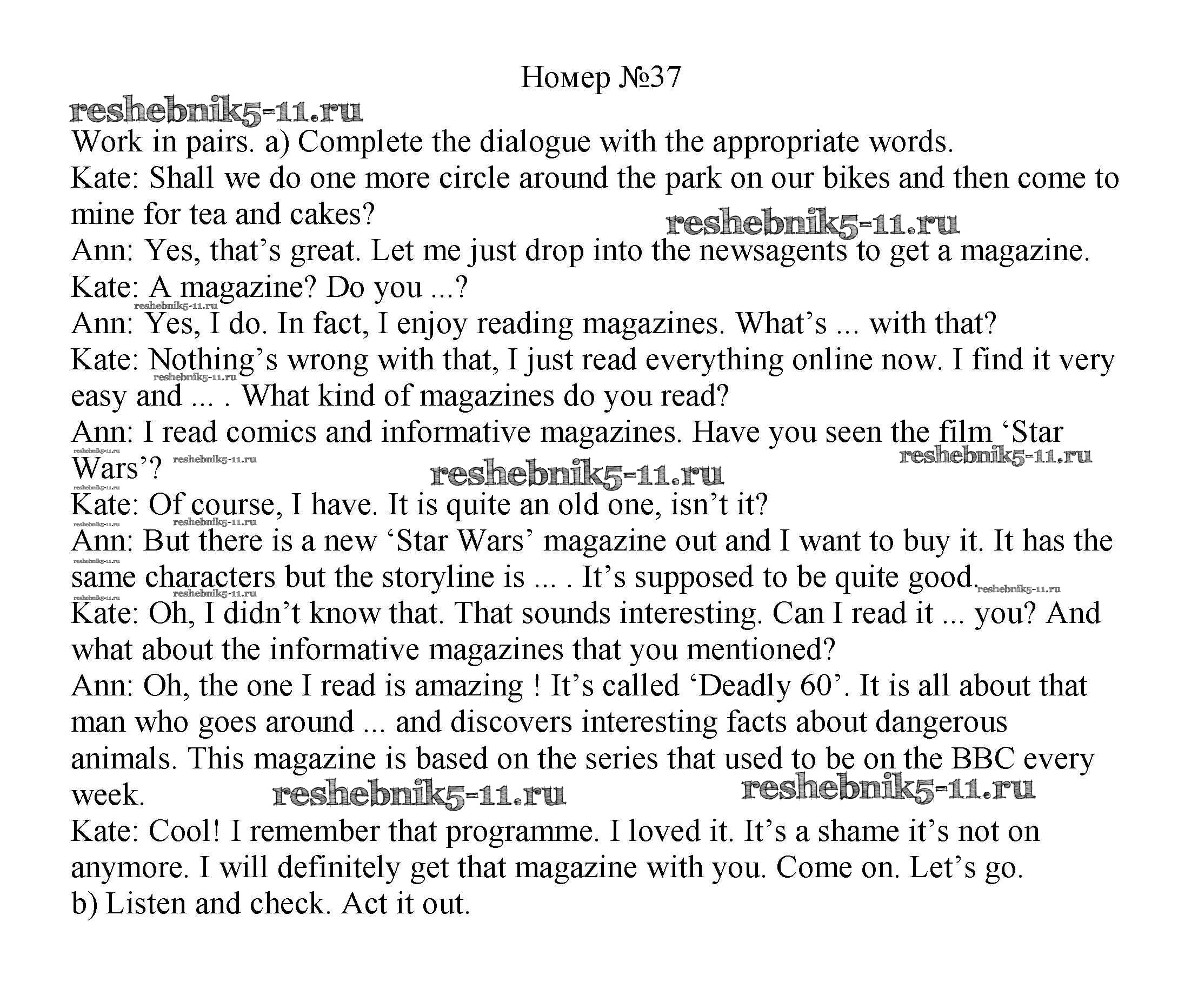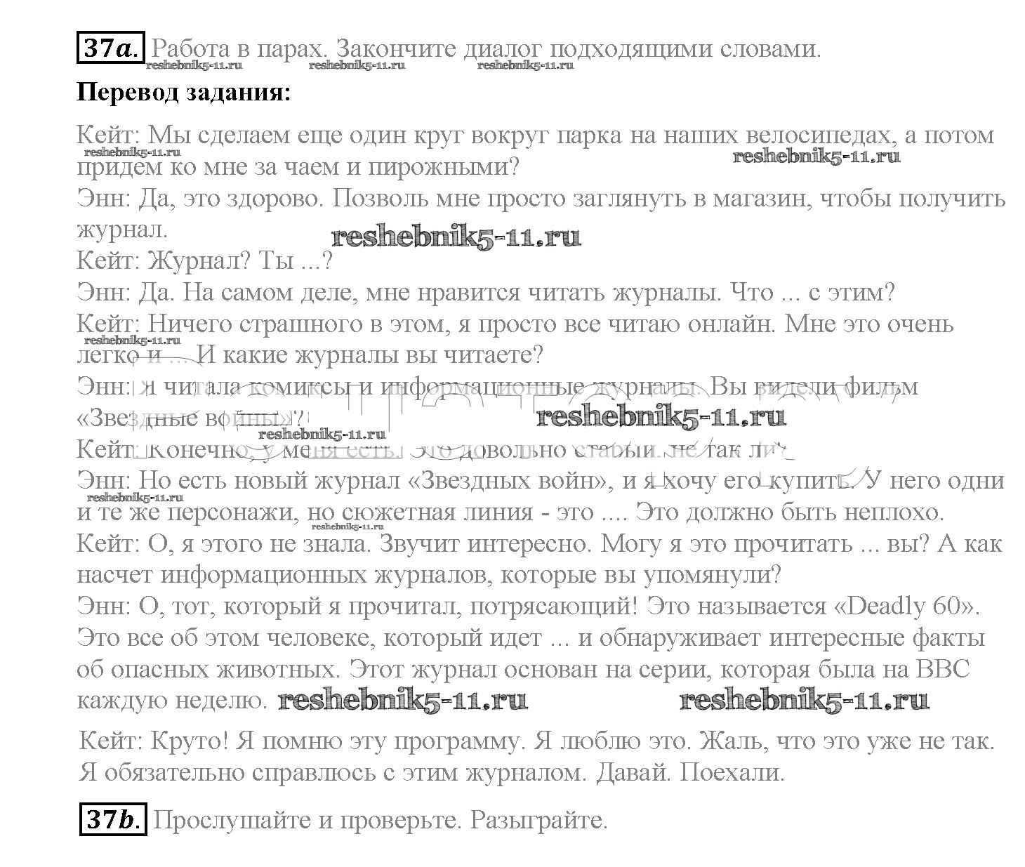 Готовая домашняя работа с ответами по Английскому языку за 8 класс Биболетова, Трубанева Учебник Enjoy English Титул 2015 ФГОС - Section 3. Do you read newspapers on Sundays? 37