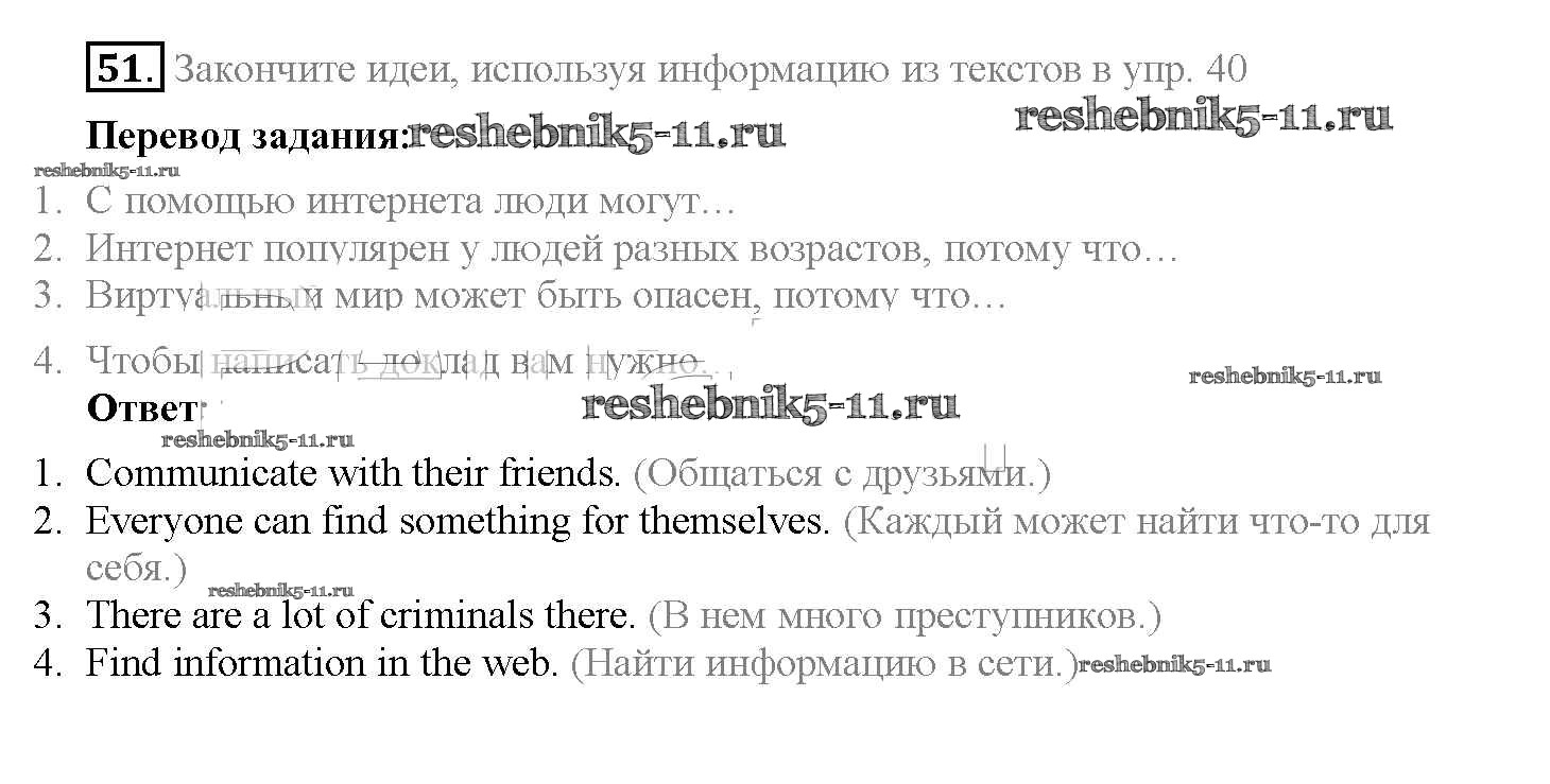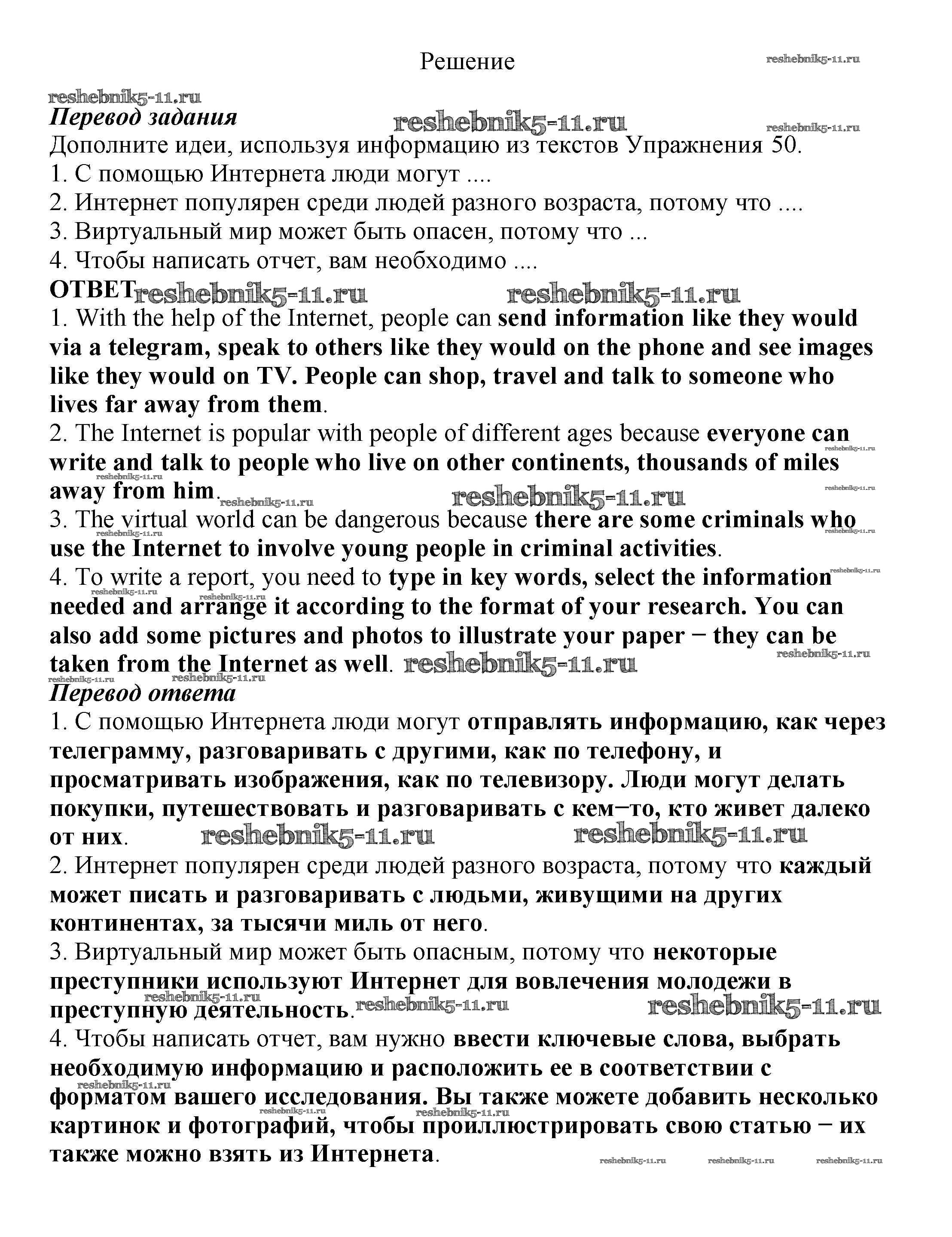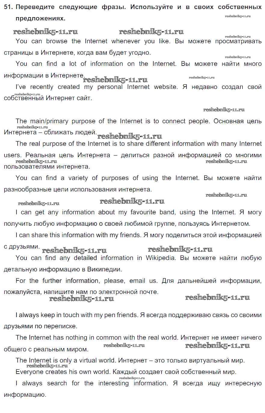 Готовая домашняя работа с ответами по Английскому языку за 8 класс Биболетова, Трубанева Учебник Enjoy English Титул 2015 ФГОС - Section 4. What Is the Internet? 51
