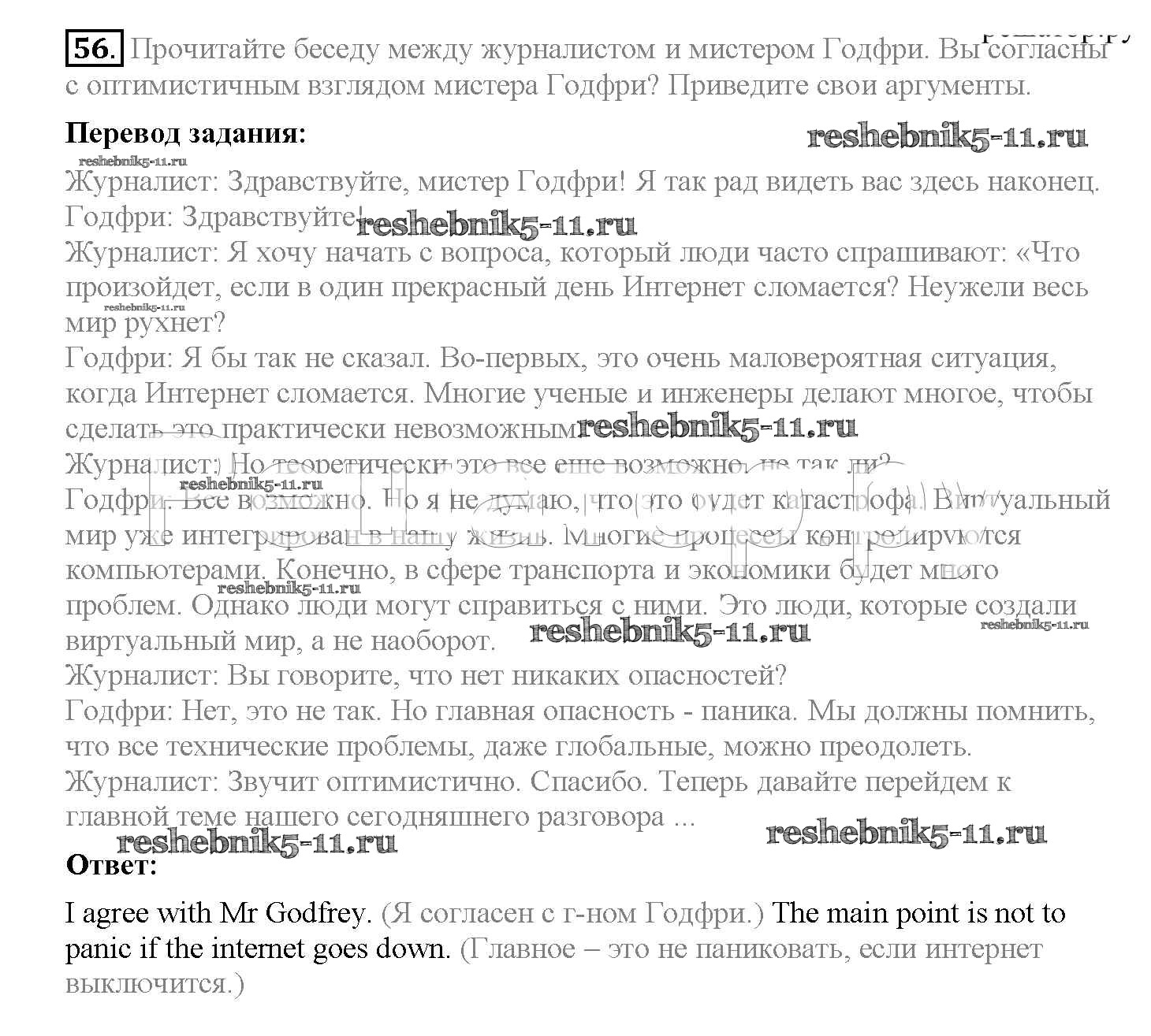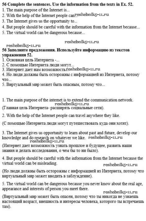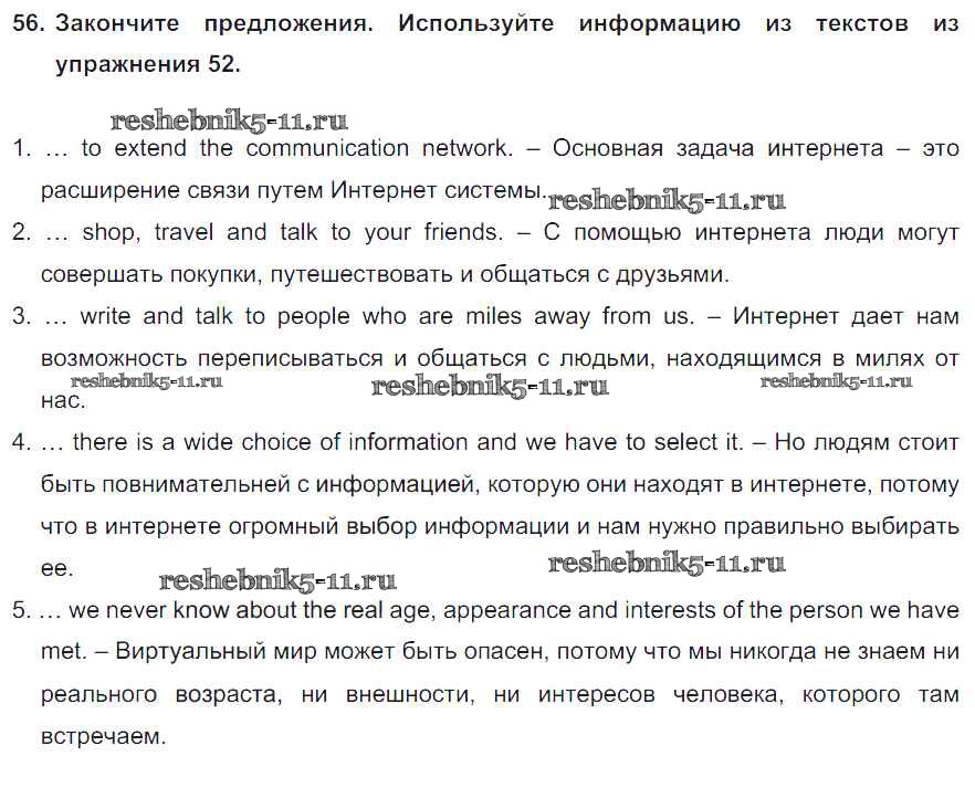 Готовая домашняя работа с ответами по Английскому языку за 8 класс Биболетова, Трубанева Учебник Enjoy English Титул 2015 ФГОС - Section 4. What Is the Internet? 56