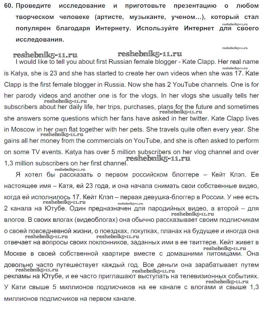 Готовая домашняя работа с ответами по Английскому языку за 8 класс Биболетова, Трубанева Учебник Enjoy English Титул 2015 ФГОС - Section 4. What Is the Internet? 60