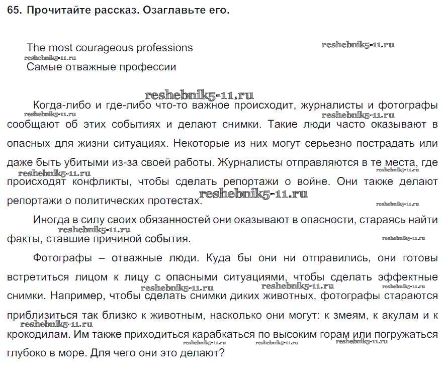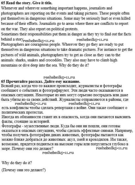 Готовая домашняя работа с ответами по Английскому языку за 8 класс Биболетова, Трубанева Учебник Enjoy English Титул 2015 ФГОС - Section 5. Is being a reporter a dangerous job? 65