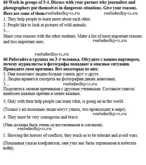Готовая домашняя работа с ответами по Английскому языку за 8 класс Биболетова, Трубанева Учебник Enjoy English Титул 2015 ФГОС - Section 5. Is being a reporter a dangerous job? 66