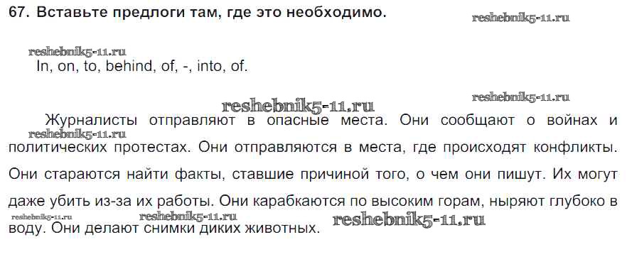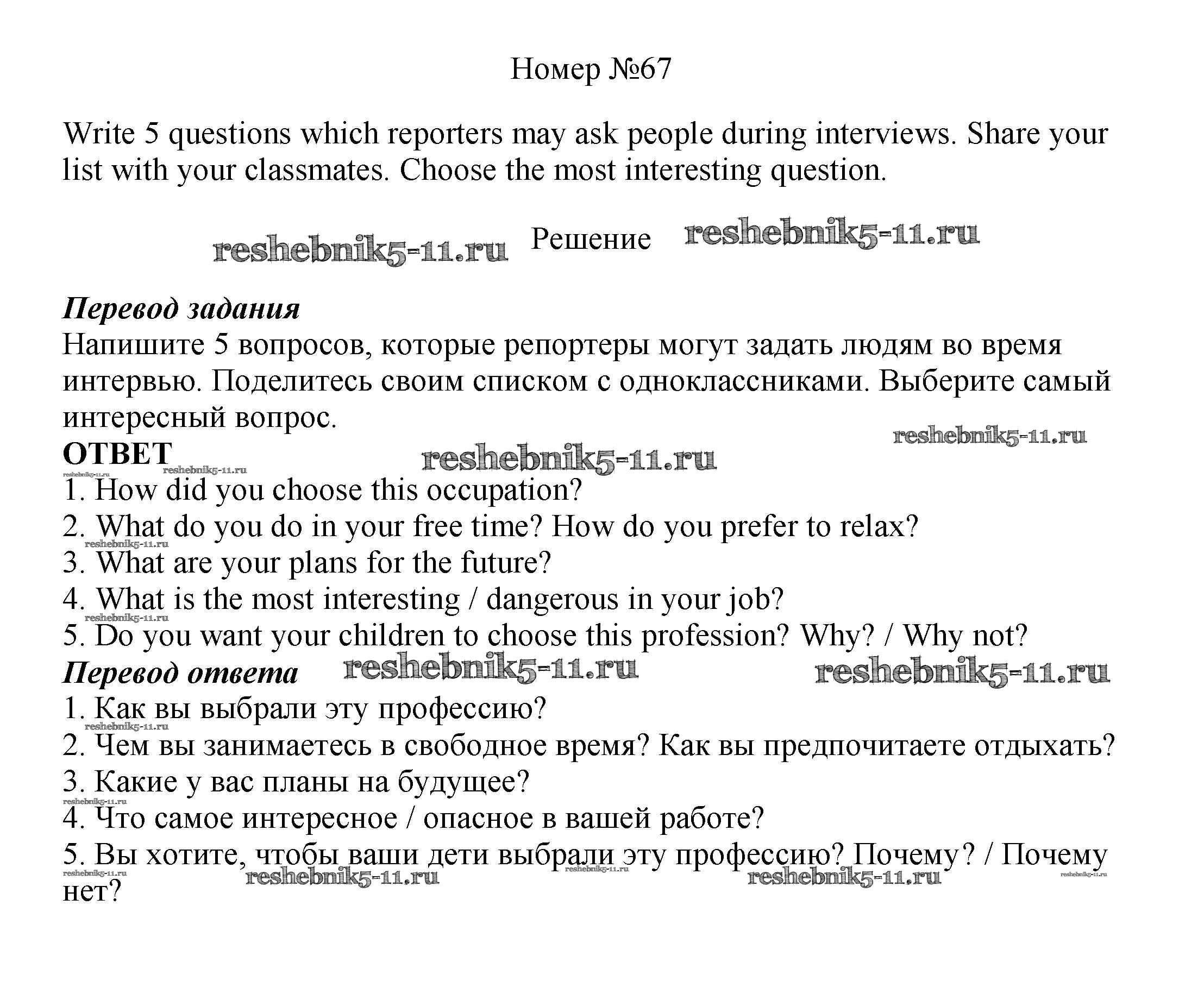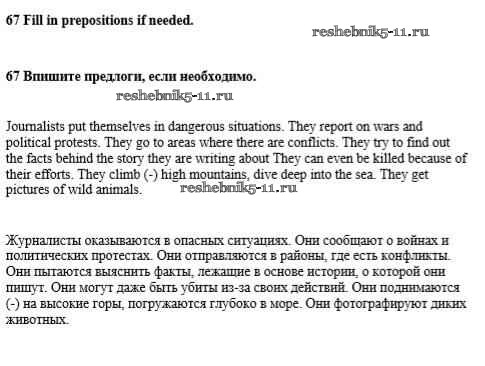 Готовая домашняя работа с ответами по Английскому языку за 8 класс Биболетова, Трубанева Учебник Enjoy English Титул 2015 ФГОС - Section 5. Is being a reporter a dangerous job? 67