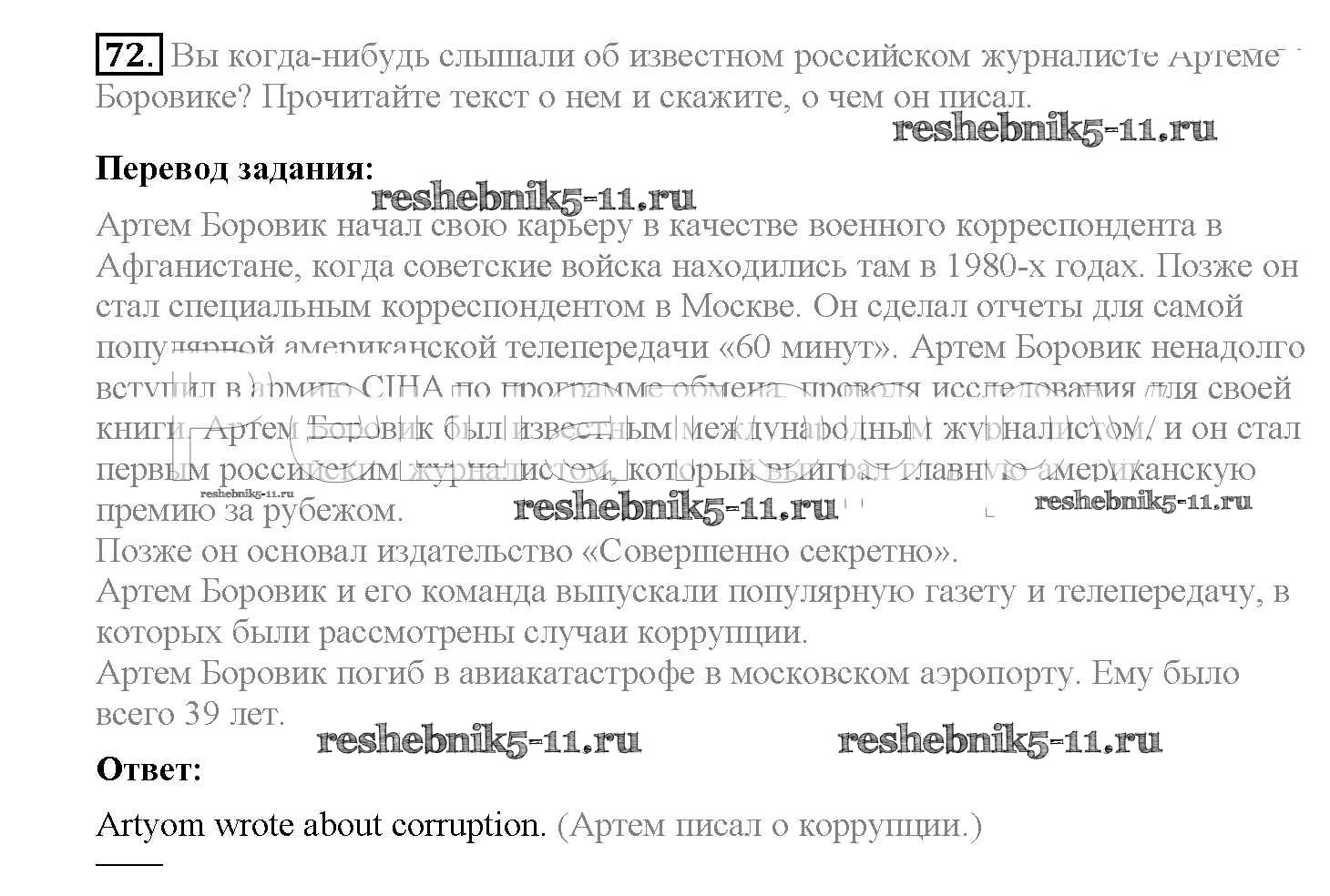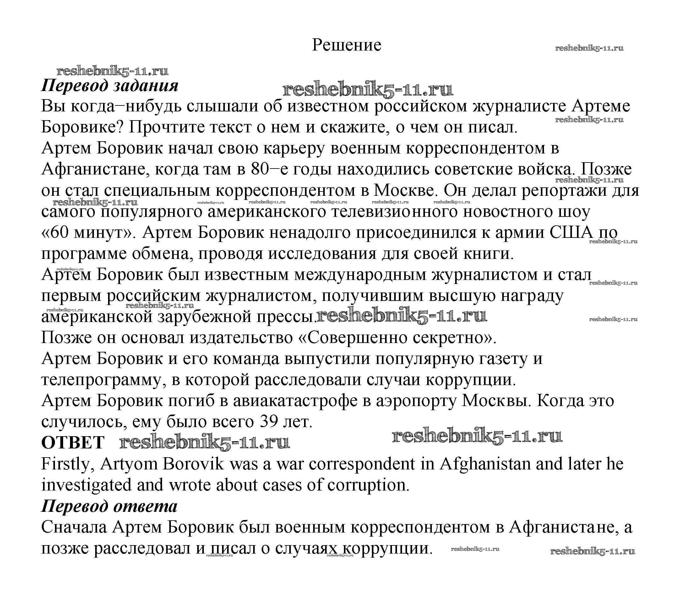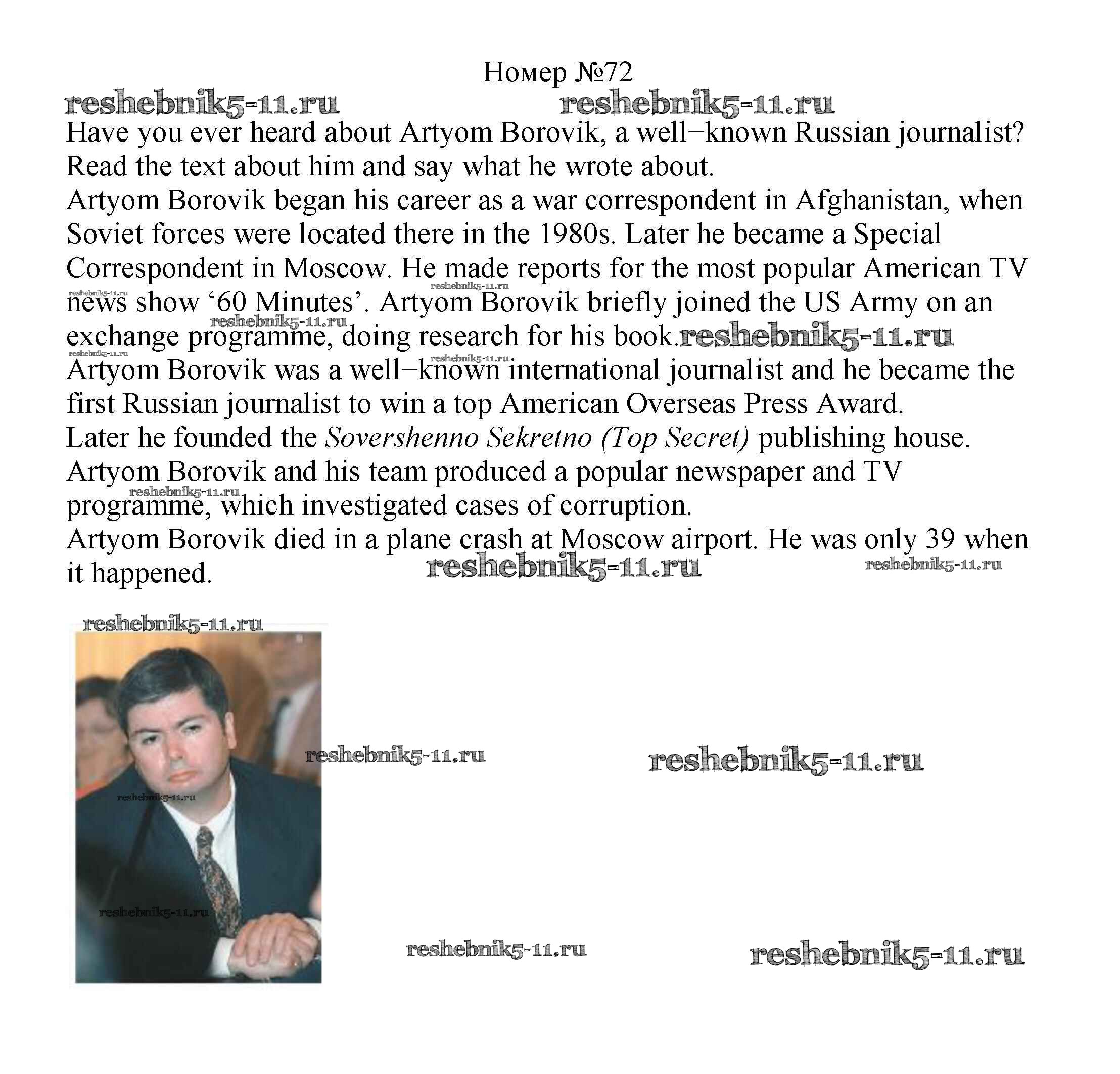 Готовая домашняя работа с ответами по Английскому языку за 8 класс Биболетова, Трубанева Учебник Enjoy English Титул 2015 ФГОС - Section 5. Is being a reporter a dangerous job? 72