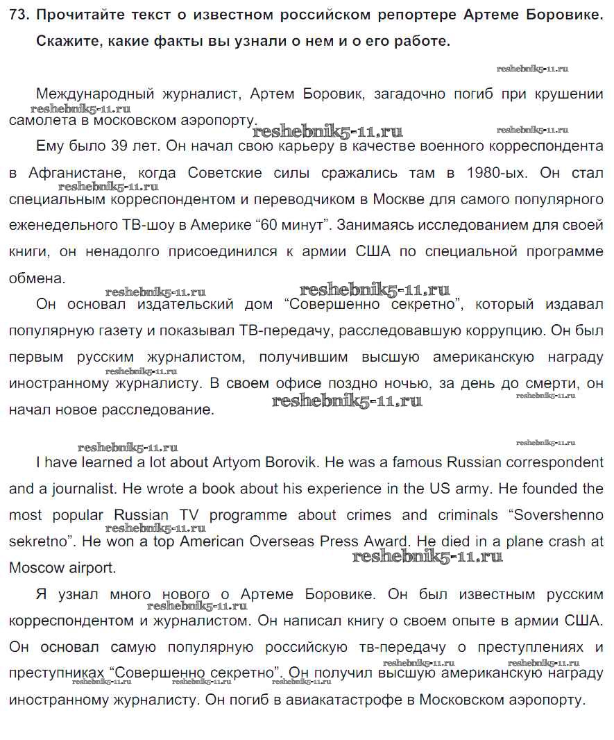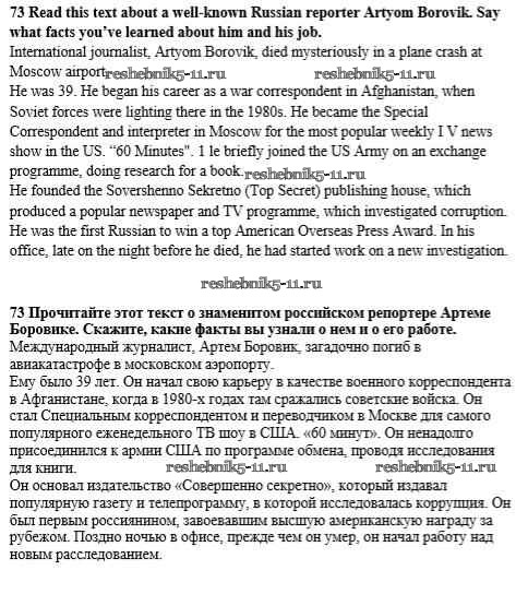 Готовая домашняя работа с ответами по Английскому языку за 8 класс Биболетова, Трубанева Учебник Enjoy English Титул 2015 ФГОС - Section 5. Is being a reporter a dangerous job? 73