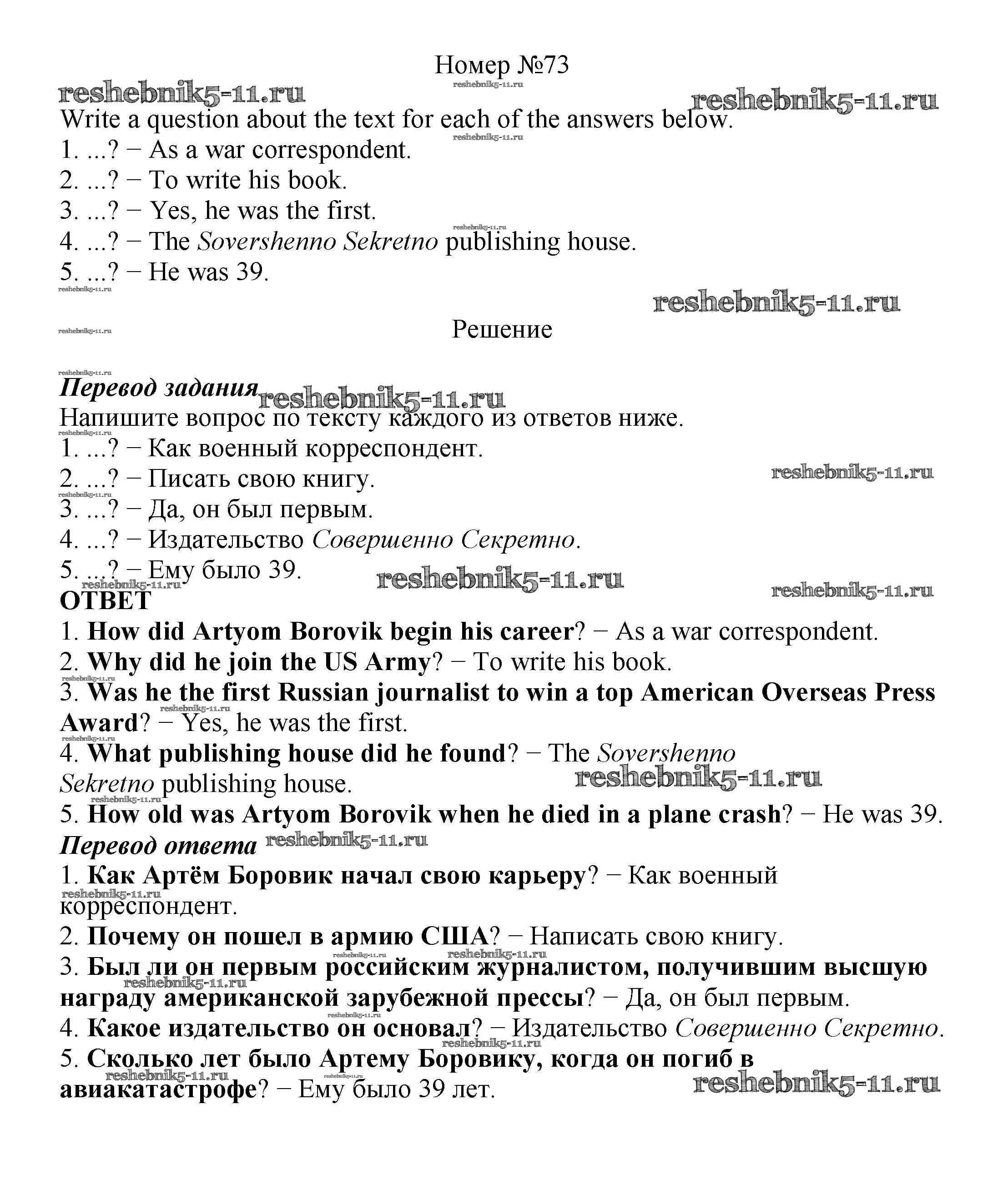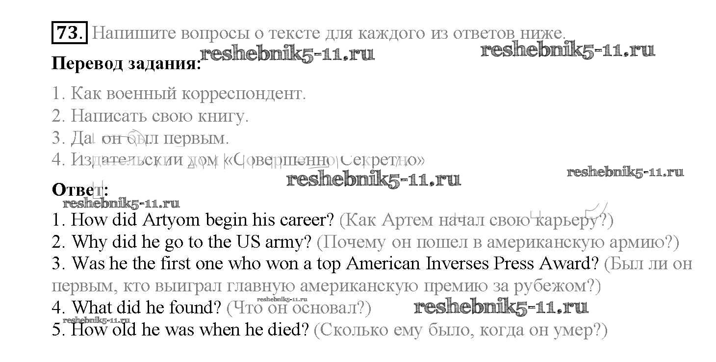 Решебник №2 к учебнику "Титул" / unit 3 / section 5 / 73