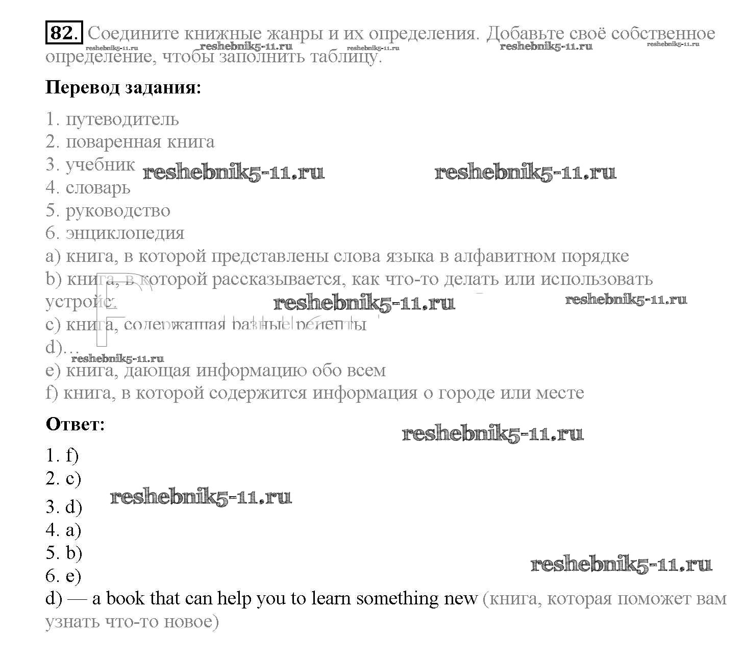 Готовая домашняя работа с ответами по Английскому языку за 8 класс Биболетова, Трубанева Учебник Enjoy English Титул 2015 ФГОС - Section 6. Are books the media, too? 82