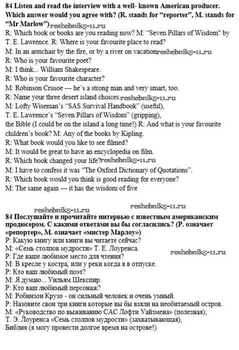 Готовая домашняя работа с ответами по Английскому языку за 8 класс Биболетова, Трубанева Учебник Enjoy English Титул 2015 ФГОС - Section 6. Are books the media, too? 84