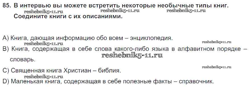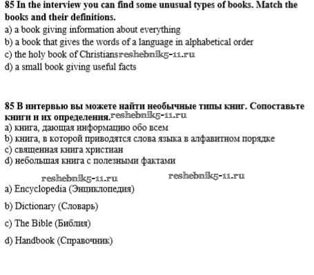 Готовая домашняя работа с ответами по Английскому языку за 8 класс Биболетова, Трубанева Учебник Enjoy English Титул 2015 ФГОС - Section 6. Are books the media, too? 85