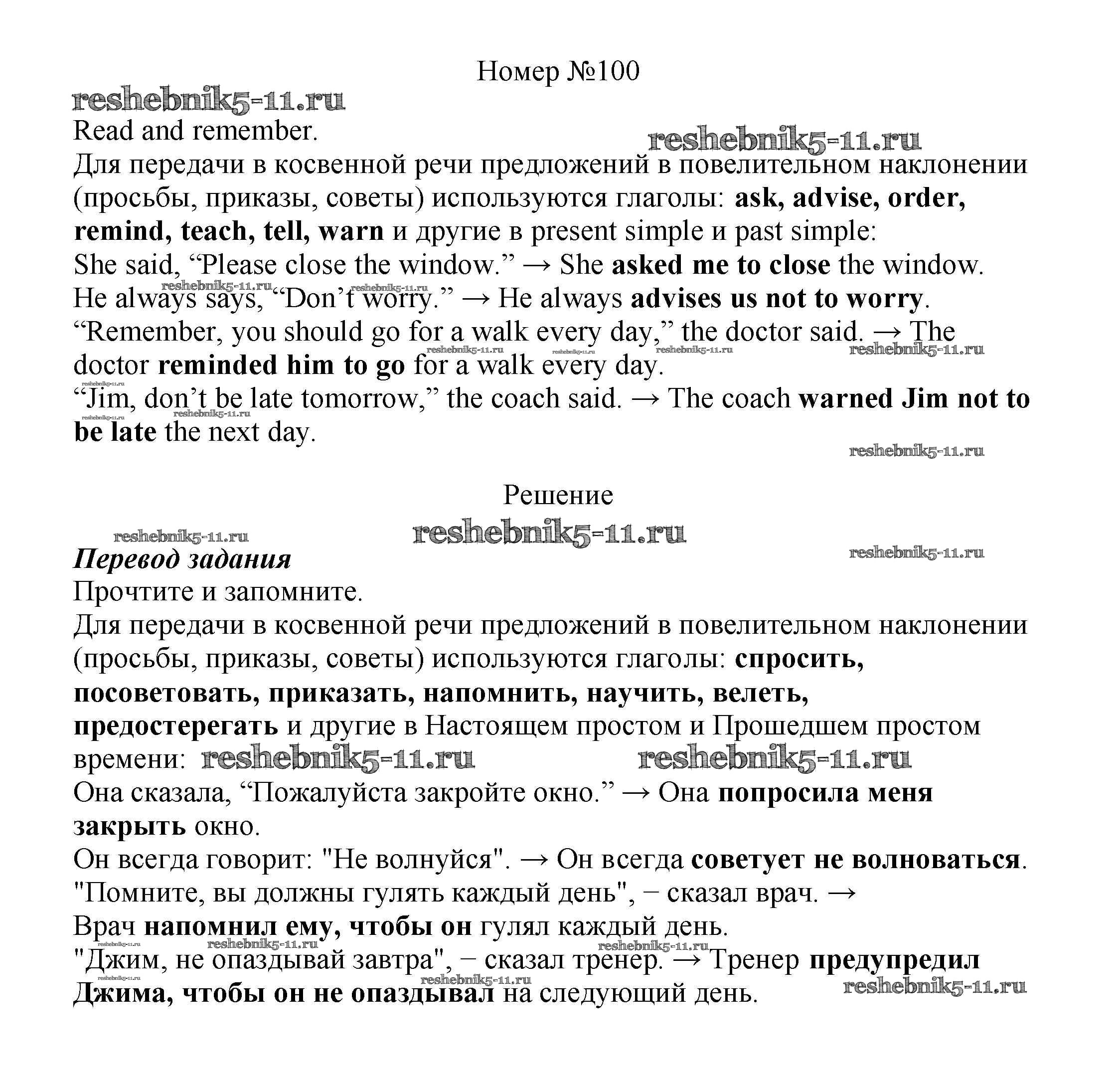 Готовая домашняя работа с ответами по Английскому языку за 8 класс Биболетова, Трубанева Учебник Enjoy English Титул 2015 ФГОС - Section 7. Reported speech 100