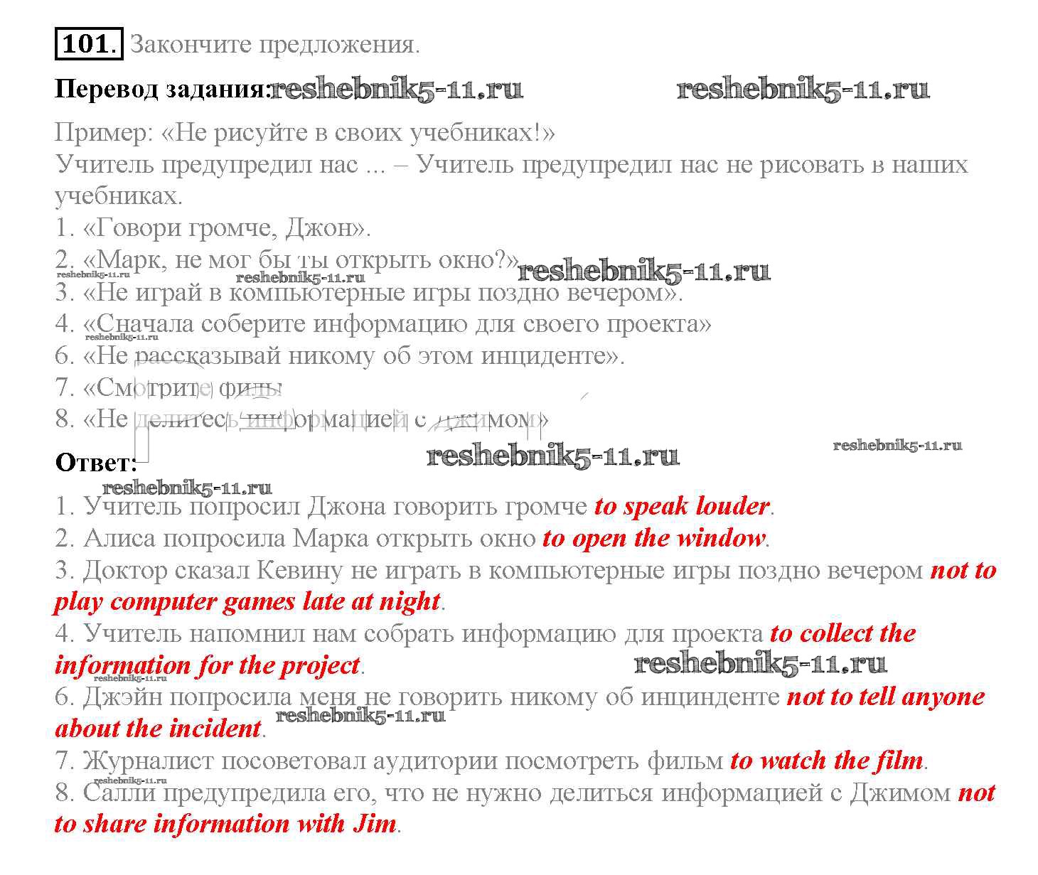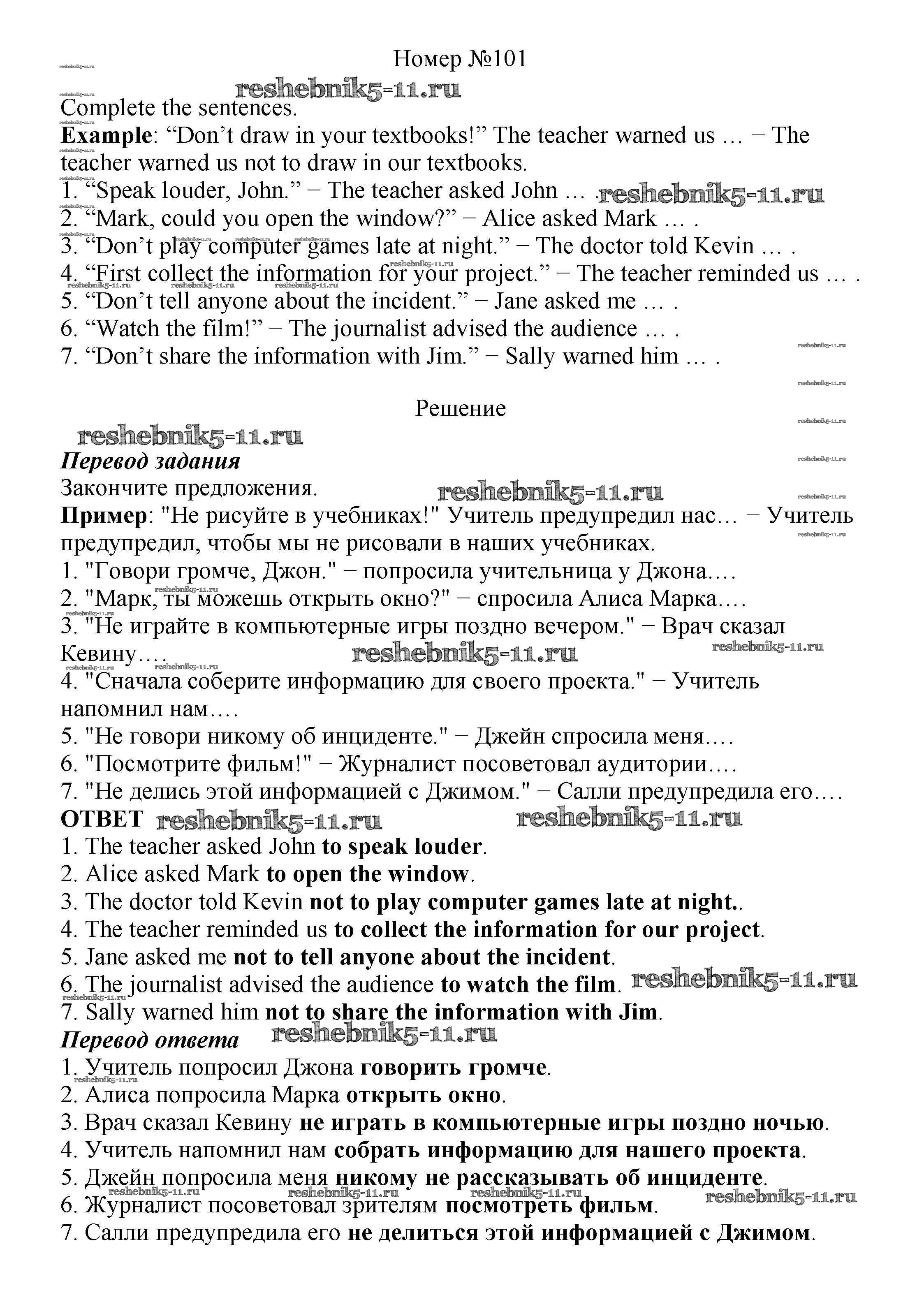 Готовая домашняя работа с ответами по Английскому языку за 8 класс Биболетова, Трубанева Учебник Enjoy English Титул 2015 ФГОС - Section 7. Reported speech 101