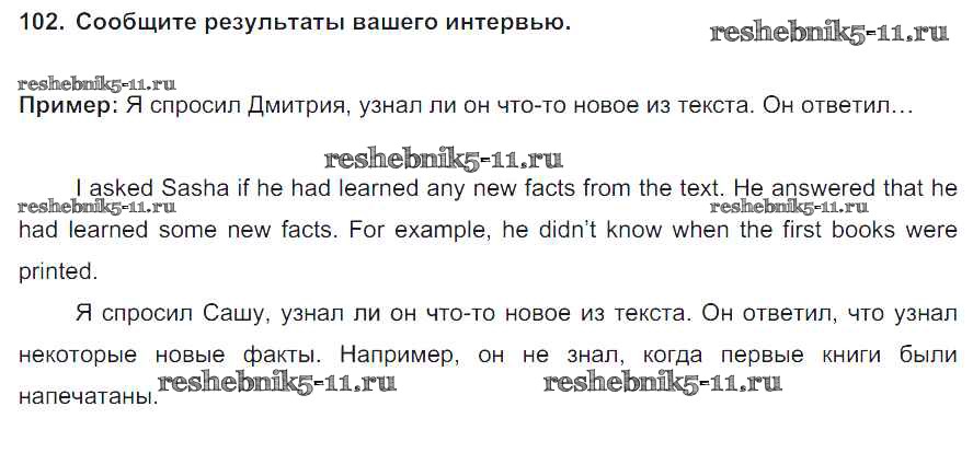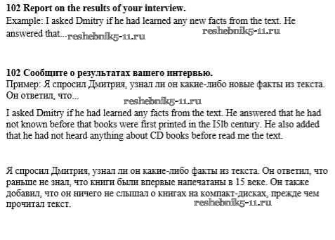 Готовая домашняя работа с ответами по Английскому языку за 8 класс Биболетова, Трубанева Учебник Enjoy English Титул 2015 ФГОС - Section 7. Reported speech 102
