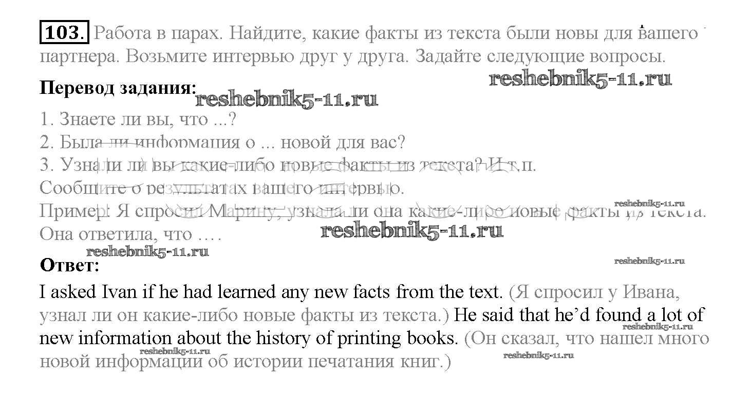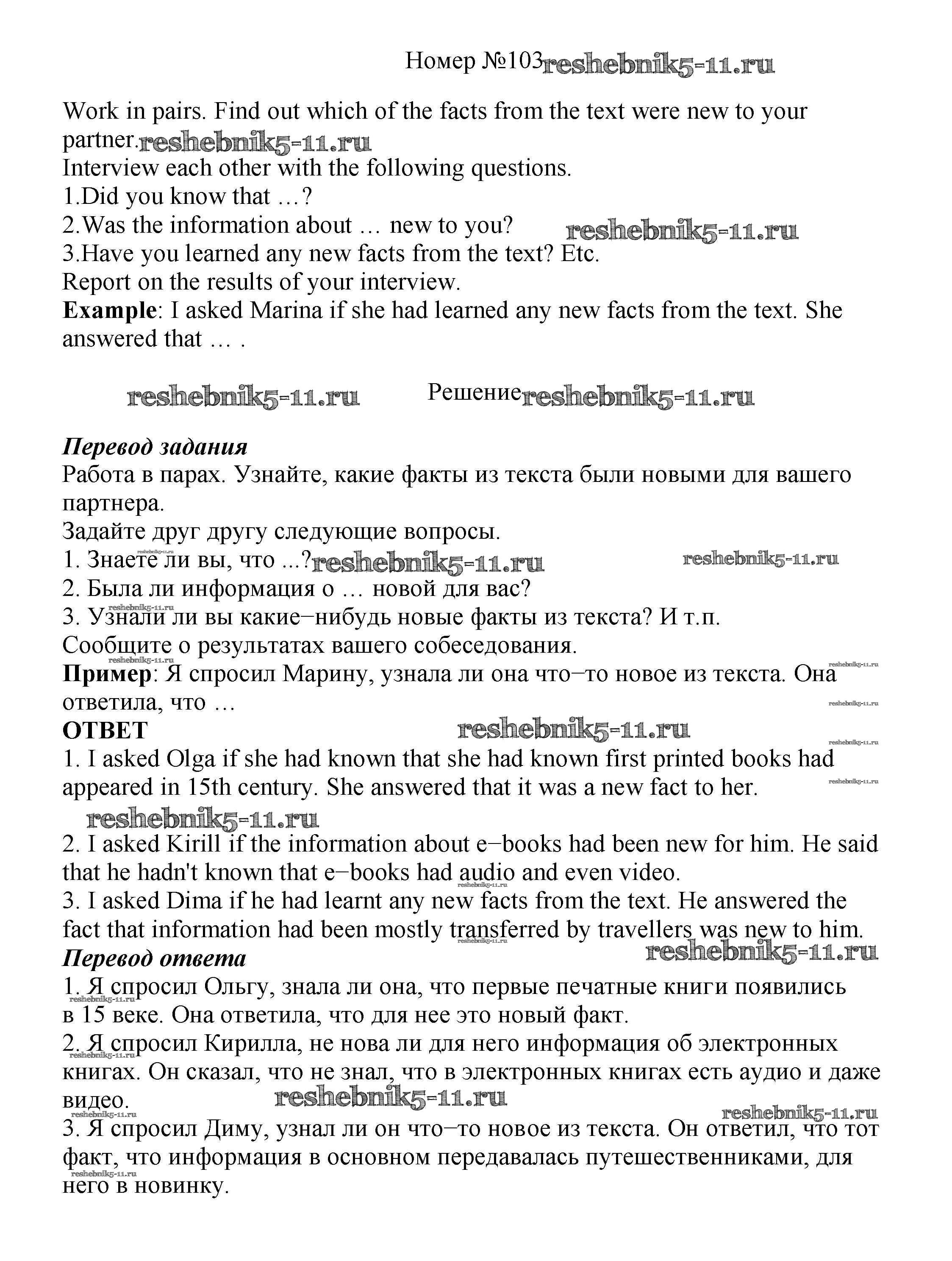 Готовая домашняя работа с ответами по Английскому языку за 8 класс Биболетова, Трубанева Учебник Enjoy English Титул 2015 ФГОС - Section 7. Reported speech 103