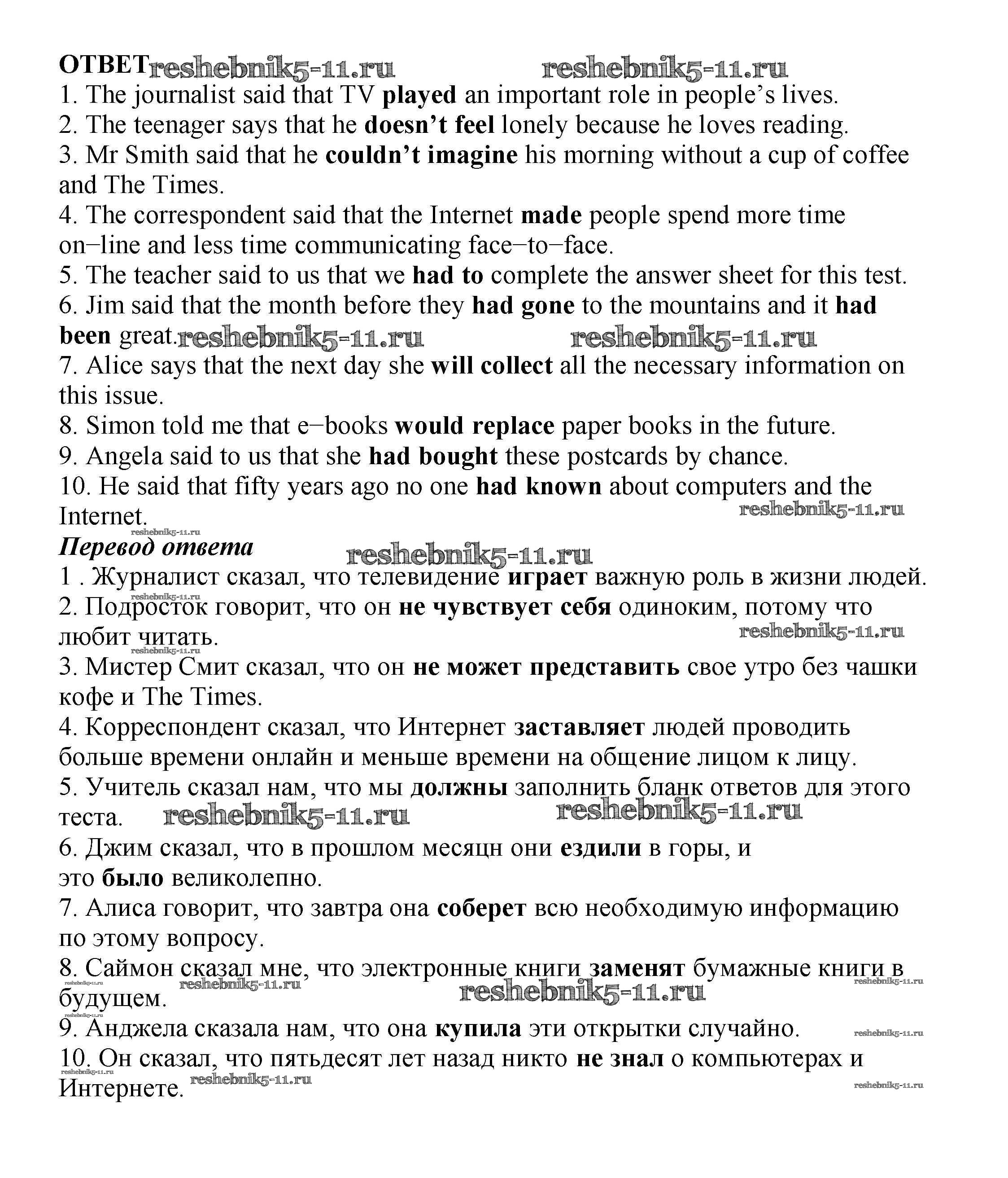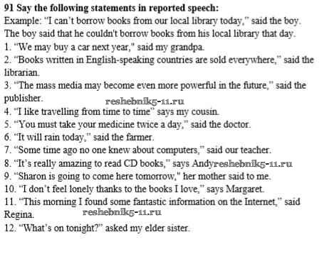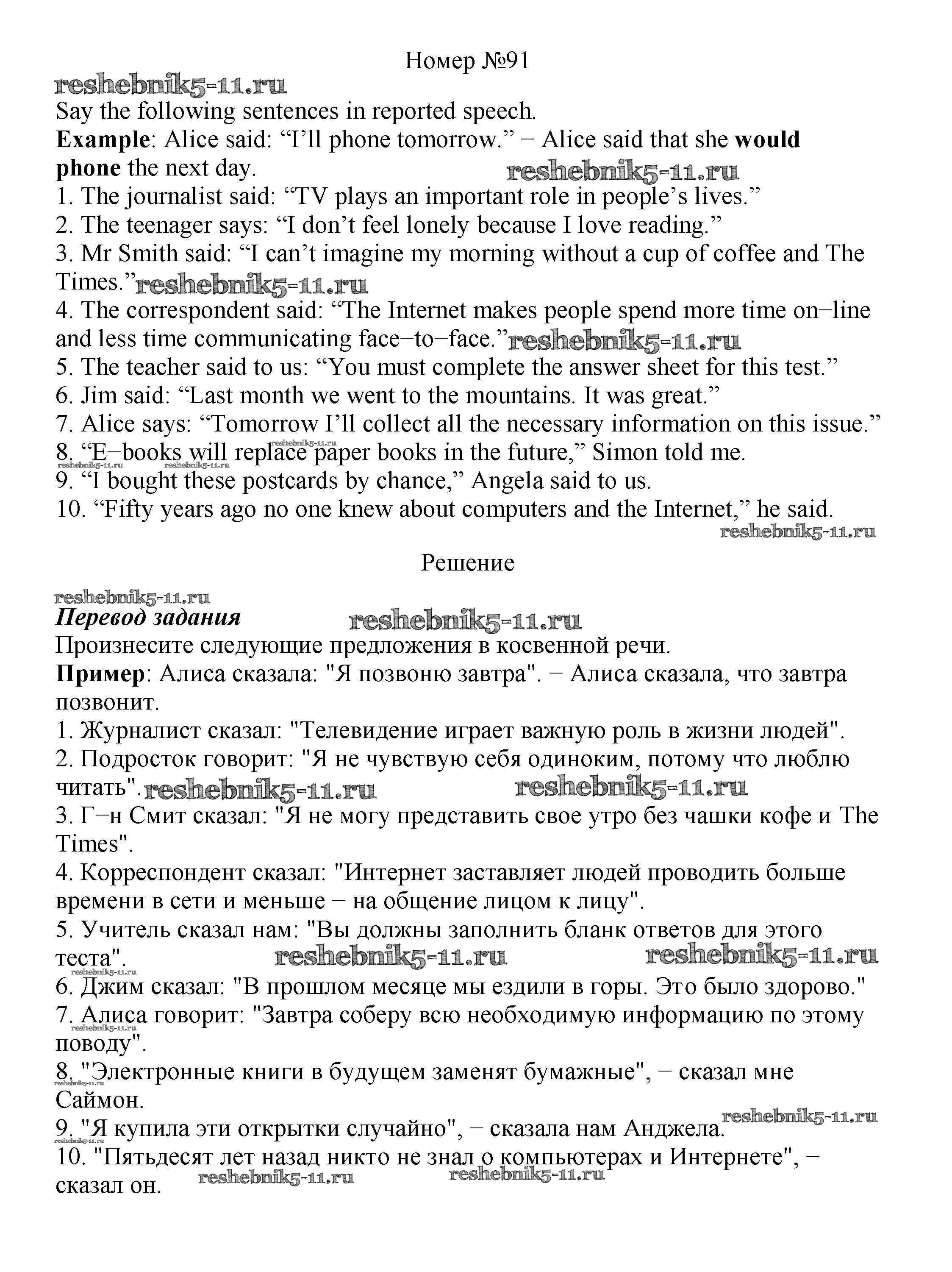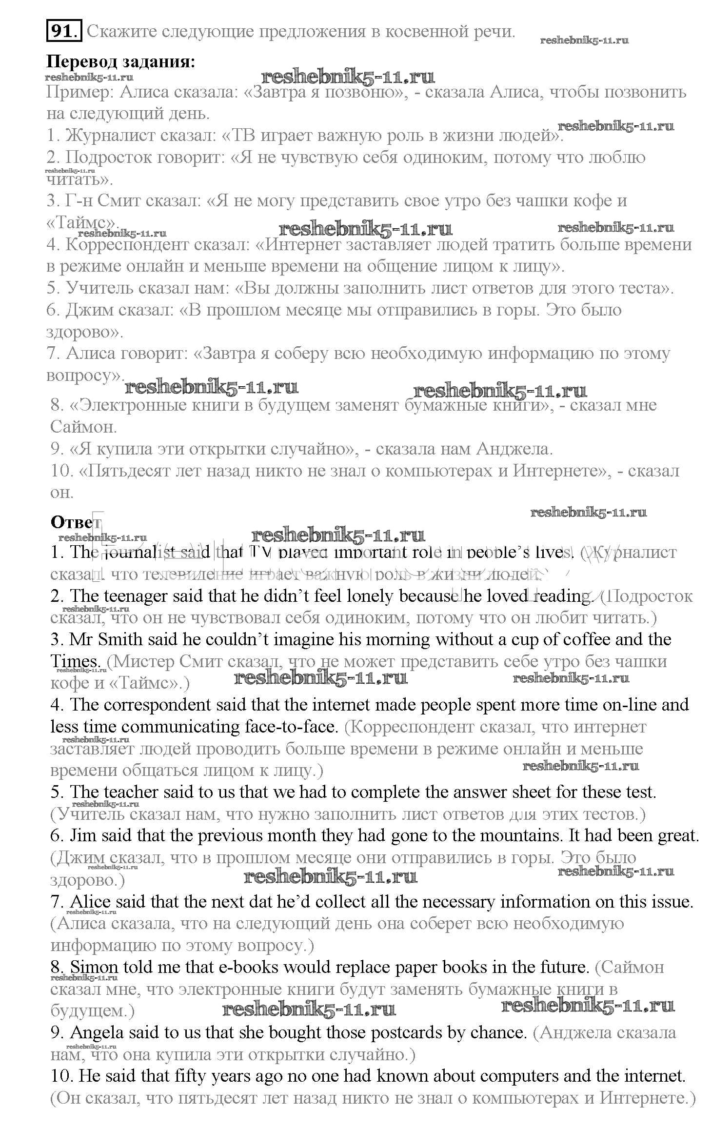 Готовая домашняя работа с ответами по Английскому языку за 8 класс Биболетова, Трубанева Учебник Enjoy English Титул 2015 ФГОС - Section 7. Reported speech 91