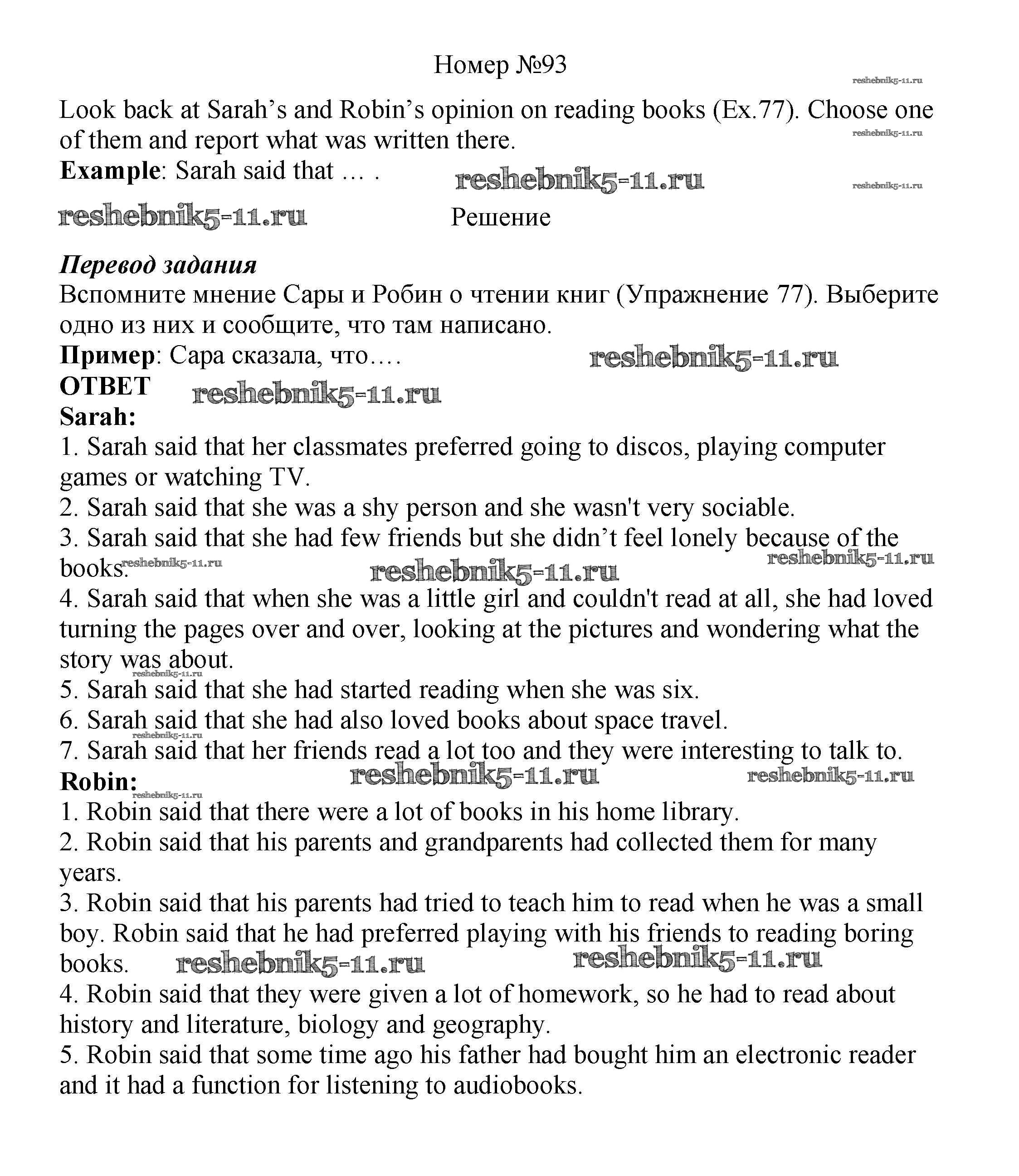 Готовая домашняя работа с ответами по Английскому языку за 8 класс Биболетова, Трубанева Учебник Enjoy English Титул 2015 ФГОС - Section 7. Reported speech 93