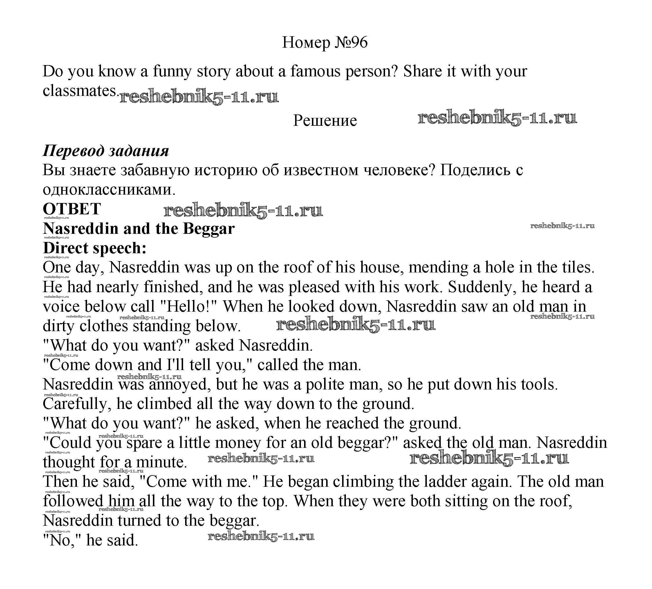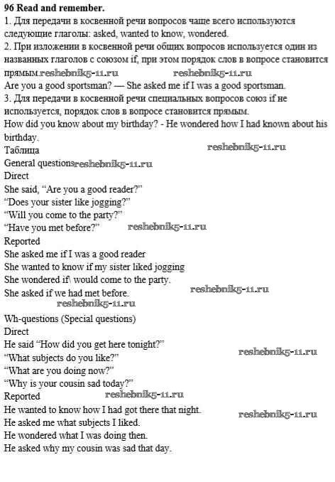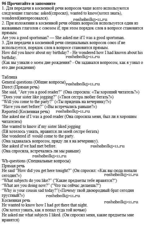 Готовая домашняя работа с ответами по Английскому языку за 8 класс Биболетова, Трубанева Учебник Enjoy English Титул 2015 ФГОС - Section 7. Reported speech 96