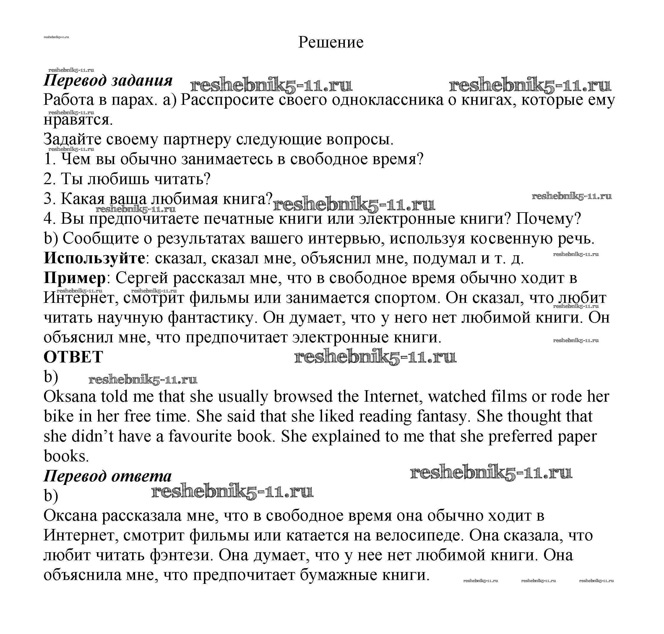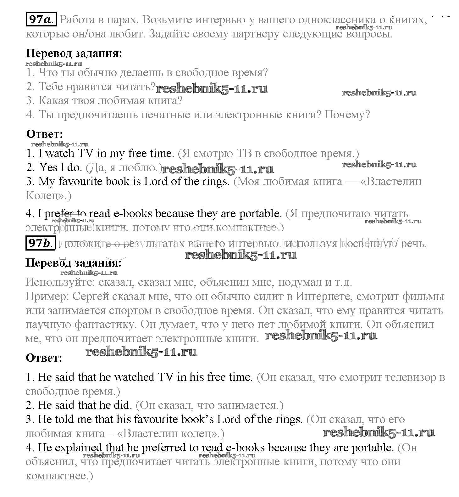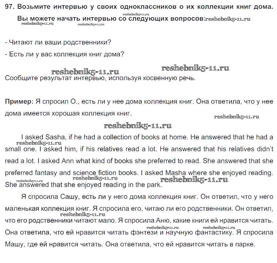 Готовая домашняя работа с ответами по Английскому языку за 8 класс Биболетова, Трубанева Учебник Enjoy English Титул 2015 ФГОС - Section 7. Reported speech 97