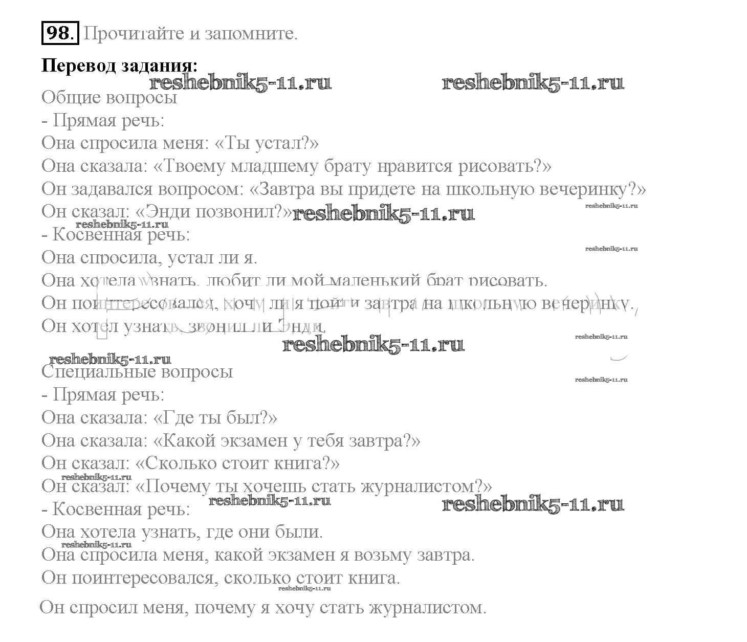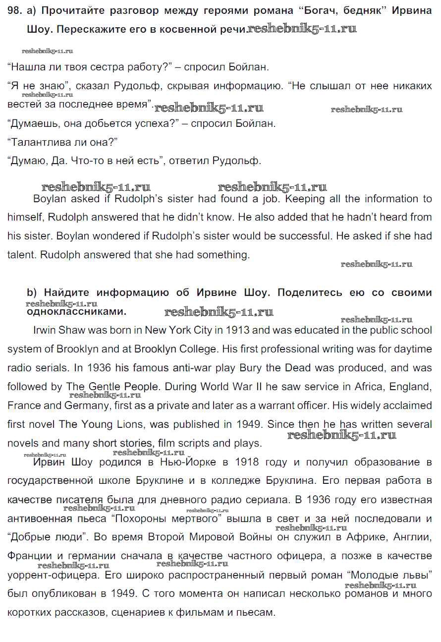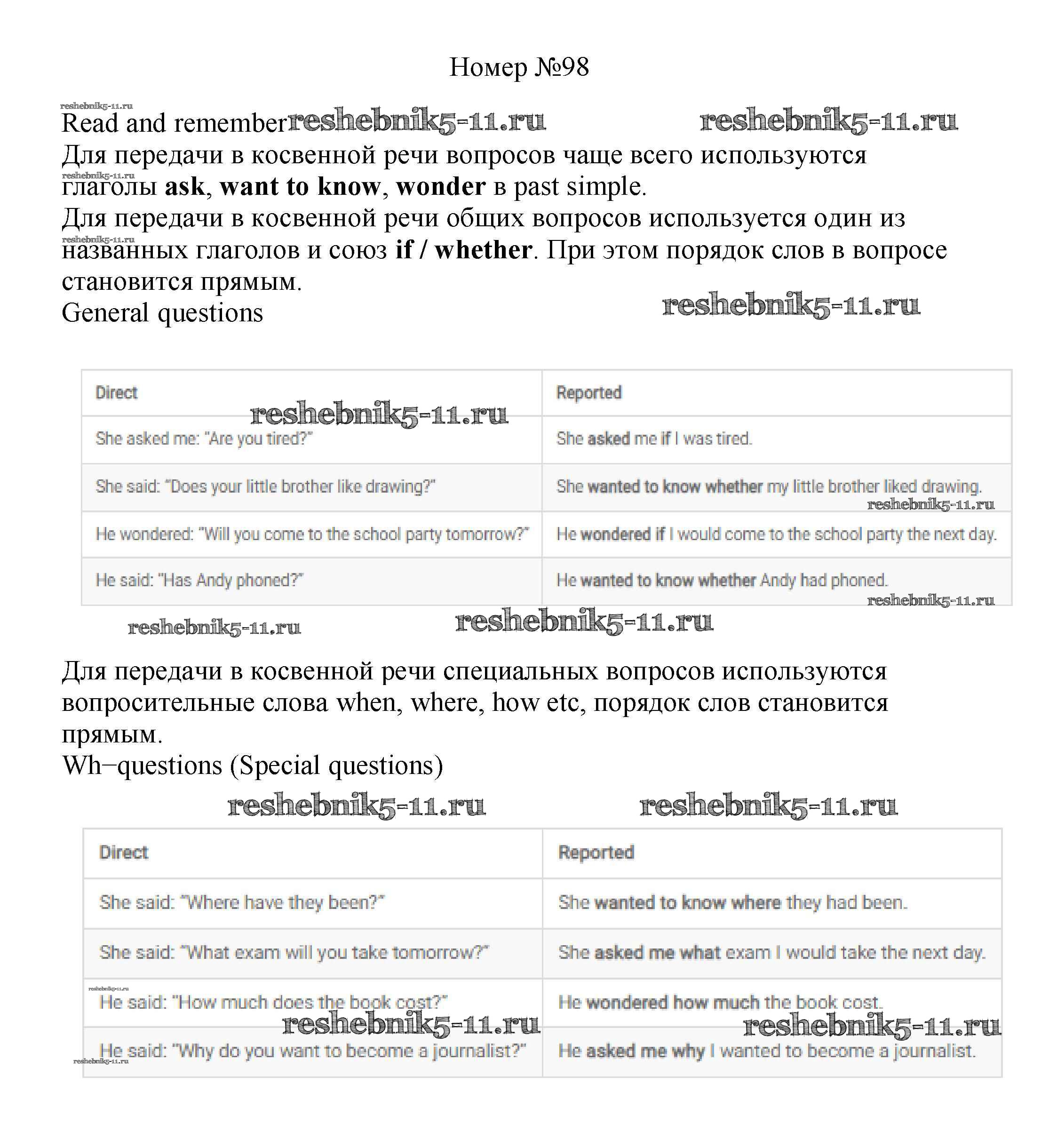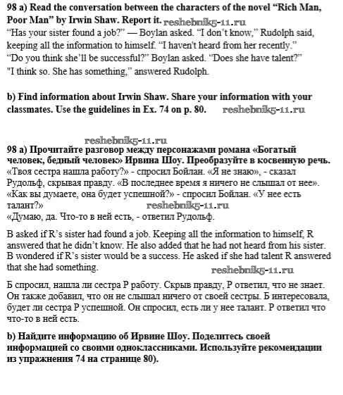Готовая домашняя работа с ответами по Английскому языку за 8 класс Биболетова, Трубанева Учебник Enjoy English Титул 2015 ФГОС - Section 7. Reported speech 98