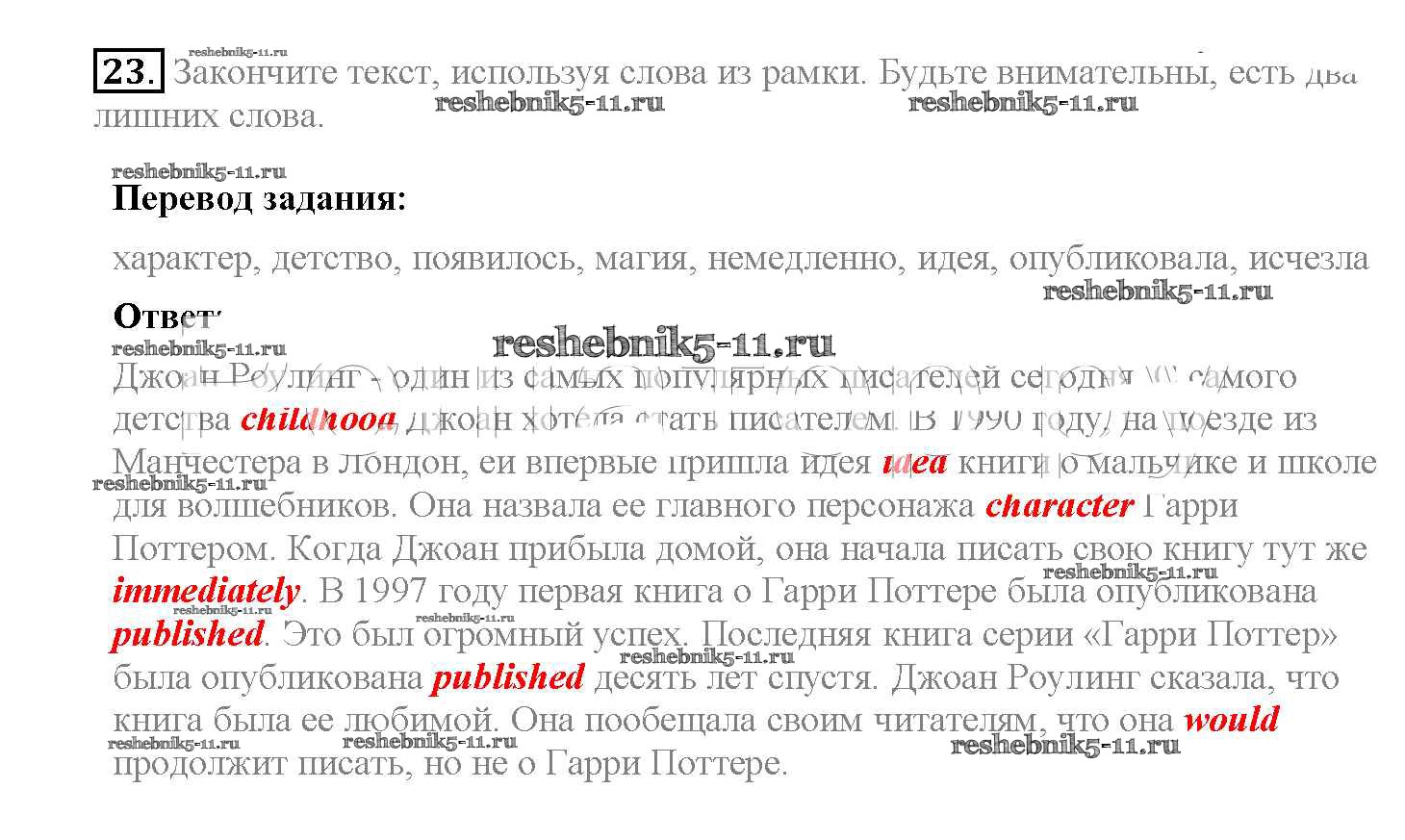 Готовая домашняя работа с ответами по Английскому языку за 8 класс Биболетова, Трубанева Учебник Enjoy English Титул 2015 ФГОС - Homework 23