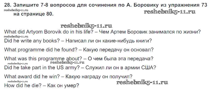 Готовая домашняя работа с ответами по Английскому языку за 8 класс Биболетова, Трубанева Учебник Enjoy English Титул 2015 ФГОС - Homework 28