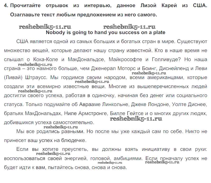 Готовая домашняя работа с ответами по Английскому языку за 8 класс Биболетова, Трубанева Учебник Enjoy English Титул 2015 ФГОС - Section 1. Who is a successful person? 4