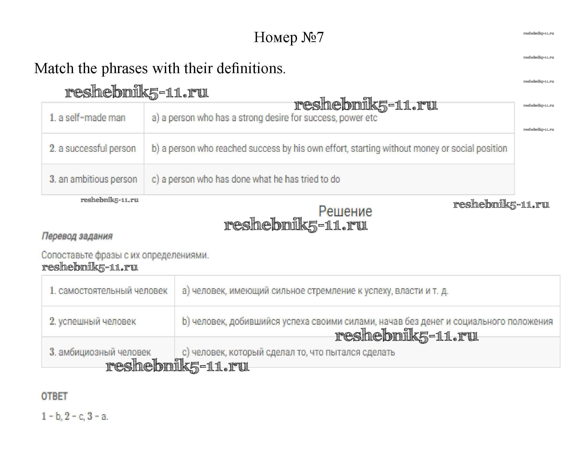 Готовая домашняя работа с ответами по Английскому языку за 8 класс Биболетова, Трубанева Учебник Enjoy English Титул 2015 ФГОС - Section 1. Who is a successful person? 7