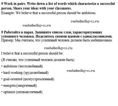 Готовая домашняя работа с ответами по Английскому языку за 8 класс Биболетова, Трубанева Учебник Enjoy English Титул 2015 ФГОС - Section 1. Who is a successful person? 9
