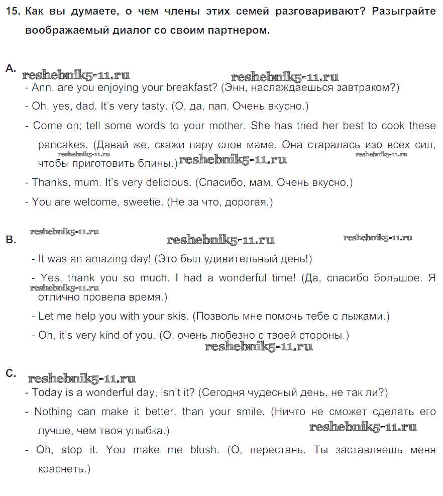 Готовая домашняя работа с ответами по Английскому языку за 8 класс Биболетова, Трубанева Учебник Enjoy English Титул 2015 ФГОС - Section 2. Family is a good start 15