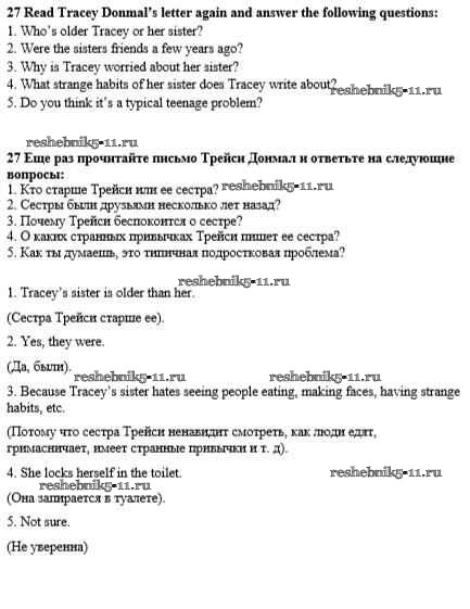 Готовая домашняя работа с ответами по Английскому языку за 8 класс Биболетова, Трубанева Учебник Enjoy English Титул 2015 ФГОС - Section 2. Family is a good start 27