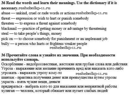 Готовая домашняя работа с ответами по Английскому языку за 8 класс Биболетова, Трубанева Учебник Enjoy English Титул 2015 ФГОС - Section 3. What is bullying? 36