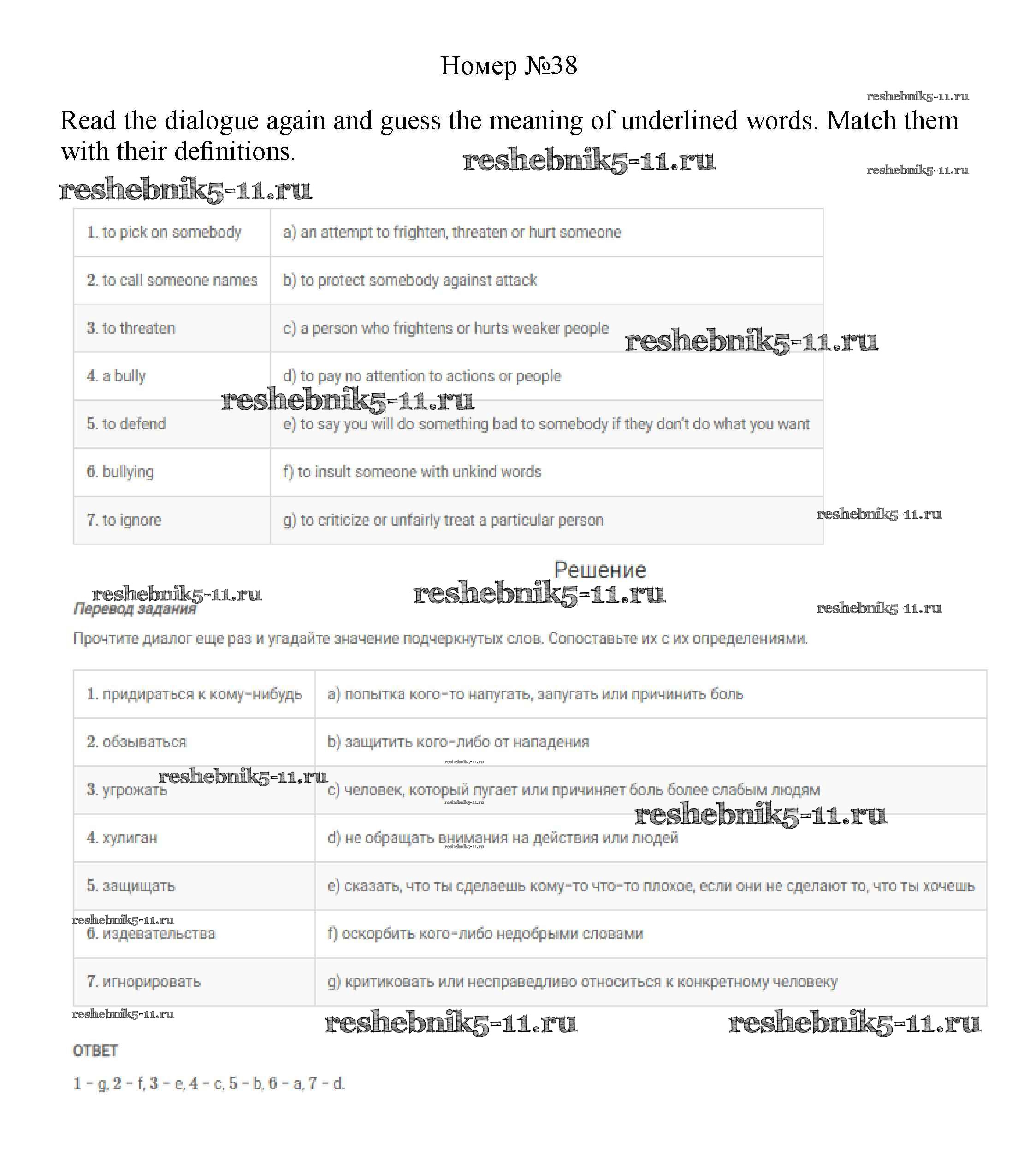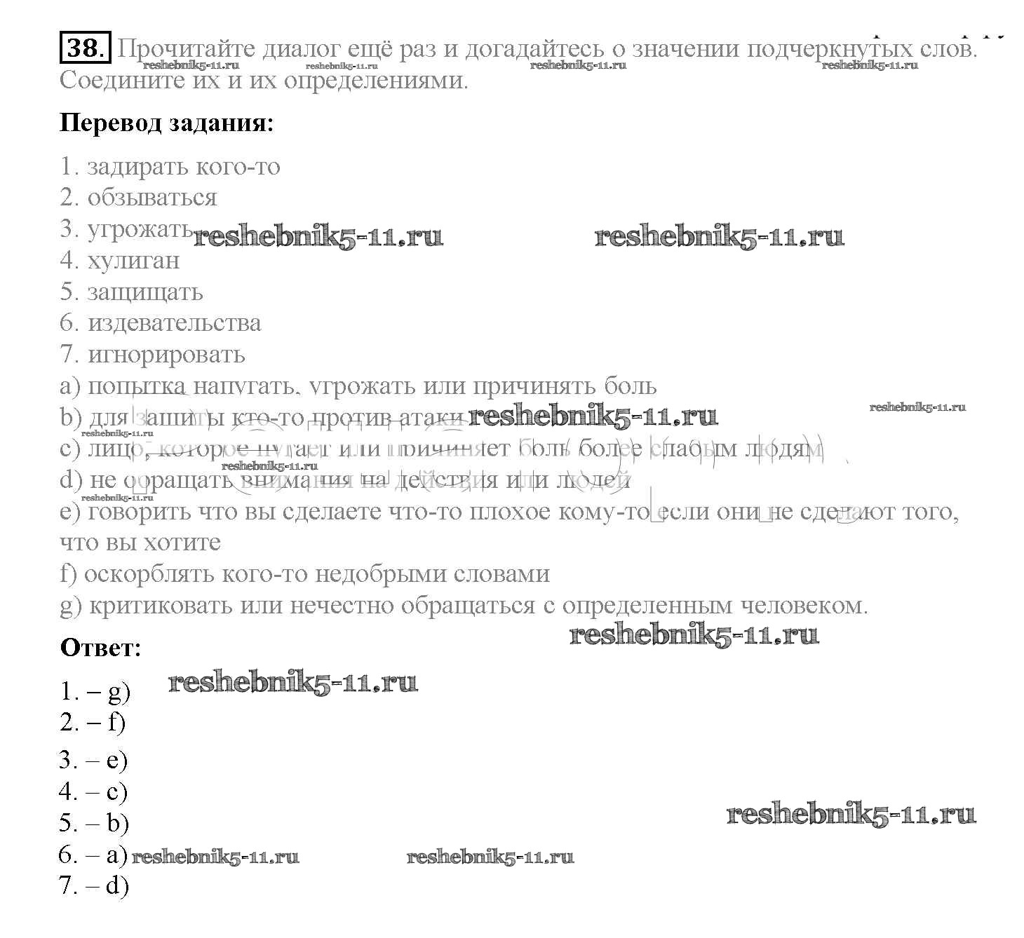 Готовая домашняя работа с ответами по Английскому языку за 8 класс Биболетова, Трубанева Учебник Enjoy English Титул 2015 ФГОС - Section 3. What is bullying? 38