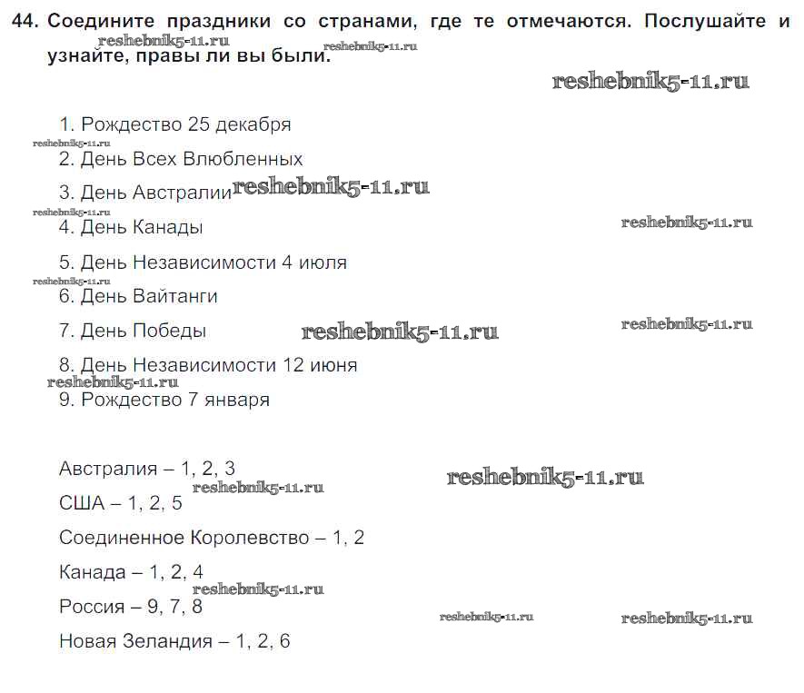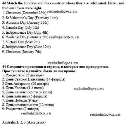 Готовая домашняя работа с ответами по Английскому языку за 8 класс Биболетова, Трубанева Учебник Enjoy English Титул 2015 ФГОС - Section 4. Why are family holidays important? 44