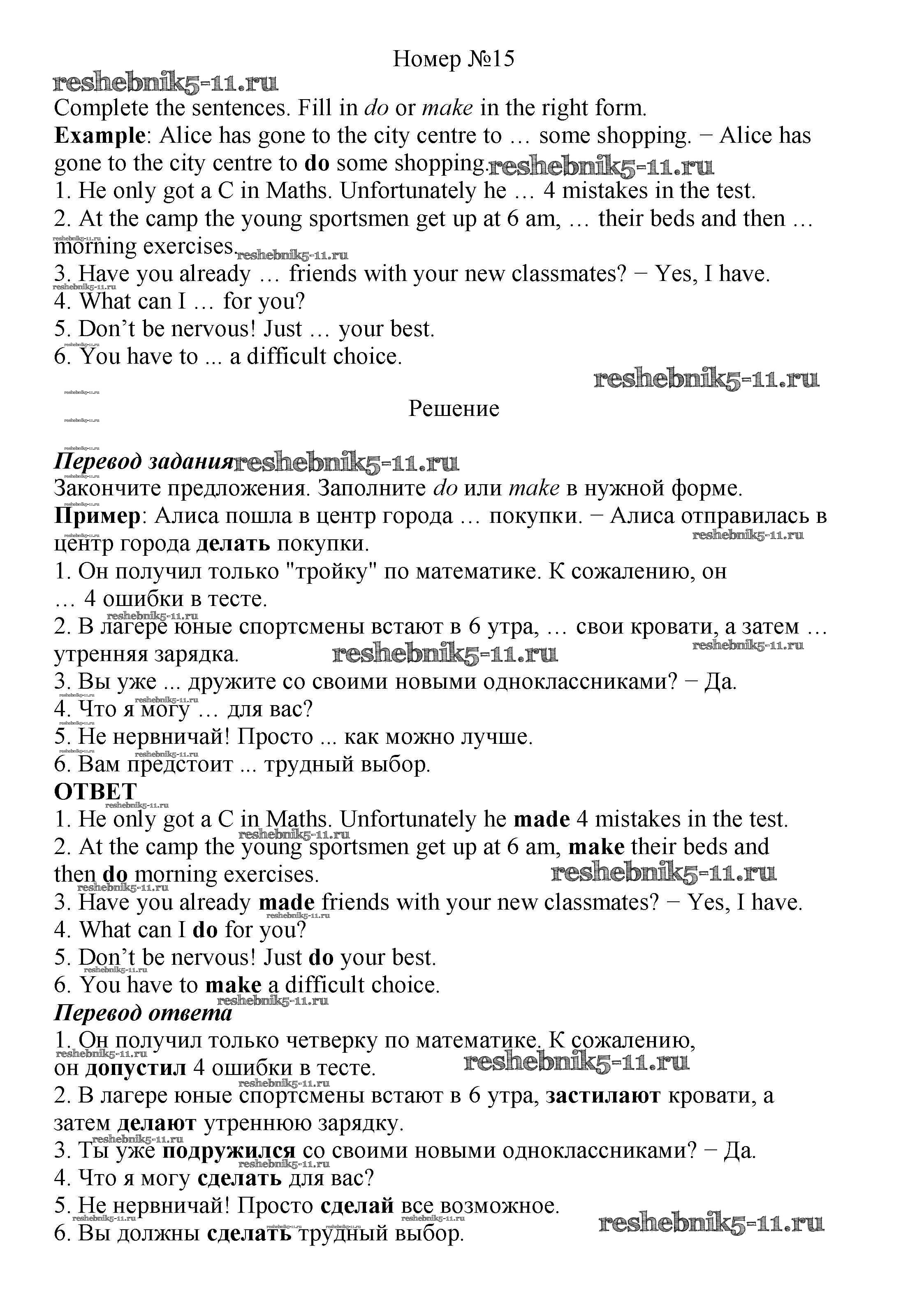 Готовая домашняя работа с ответами по Английскому языку за 8 класс Биболетова, Трубанева Учебник Enjoy English Титул 2015 ФГОС - Homework 15