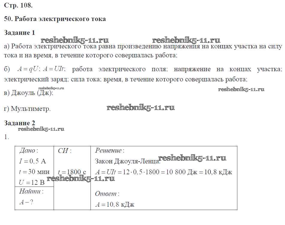 Готовая домашняя работа с ответами по Физике за 8 класс Перышкин Рабочая тетрадь УМК Экзамен 2017 ФГОС - Страницы 108