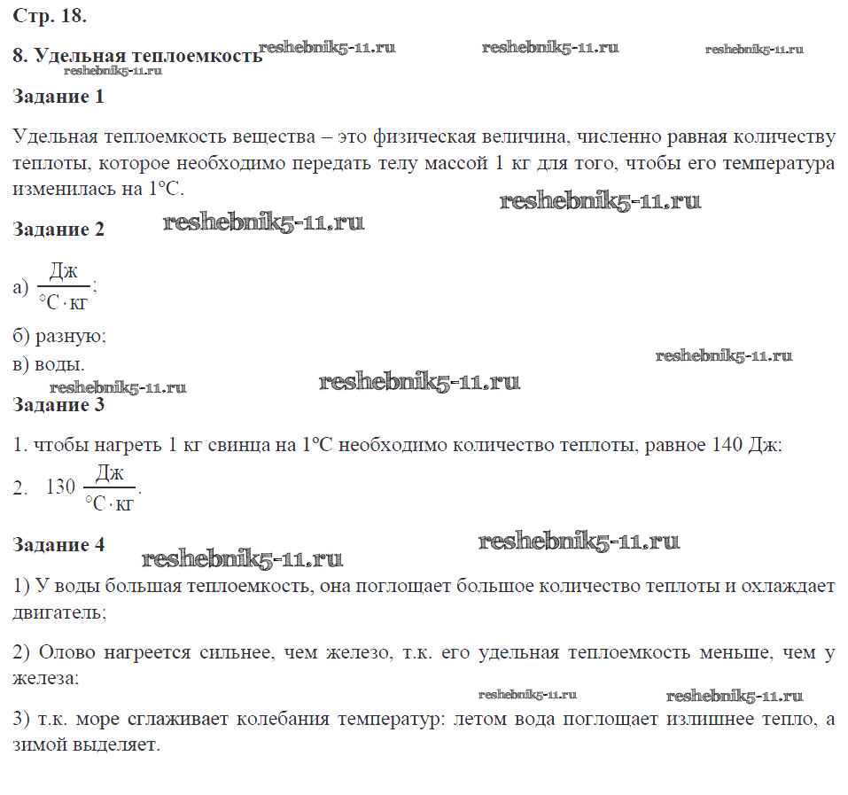 Готовая домашняя работа с ответами по Физике за 8 класс Перышкин Рабочая тетрадь УМК Экзамен 2017 ФГОС - Страницы 18