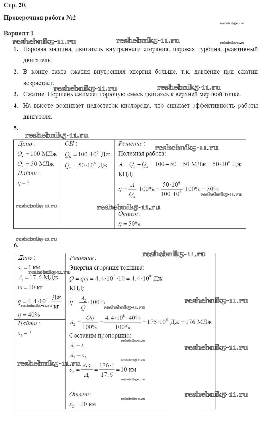 Готовая домашняя работа с ответами по Физике за 8 класс Жумаев Тетрадь-экзаменатор Сферы Просвещение 2012 ФГОС - Страницы 20