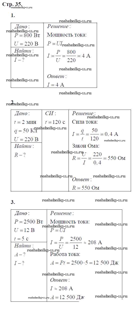 Готовая домашняя работа с ответами по Физике за 8 класс Жумаев Тетрадь-экзаменатор Сферы Просвещение 2012 ФГОС - Страницы 35