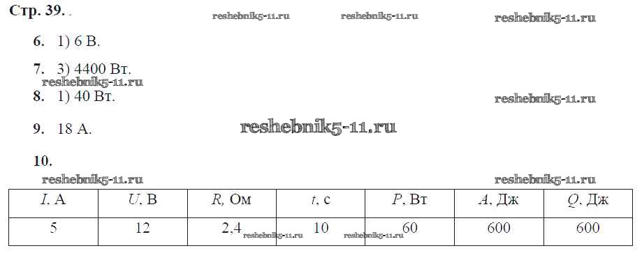 Готовая домашняя работа с ответами по Физике за 8 класс Жумаев Тетрадь-экзаменатор Сферы Просвещение 2012 ФГОС - Страницы 39
