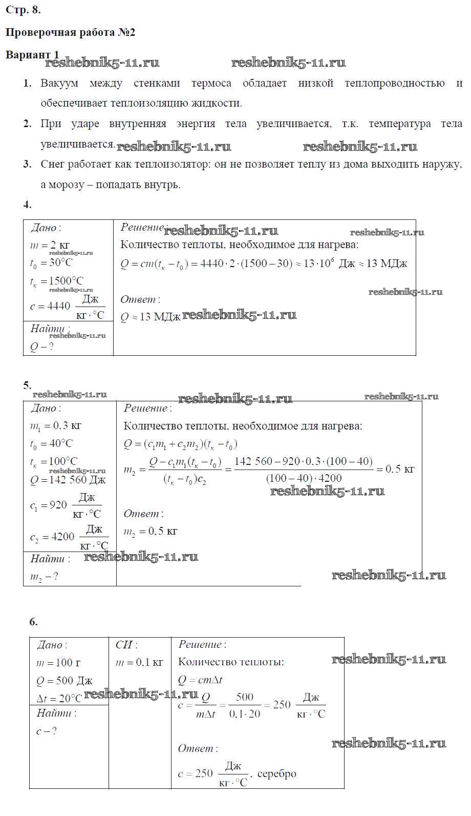 Готовая домашняя работа с ответами по Физике за 8 класс Жумаев Тетрадь-экзаменатор Сферы Просвещение 2012 ФГОС - Страницы 8