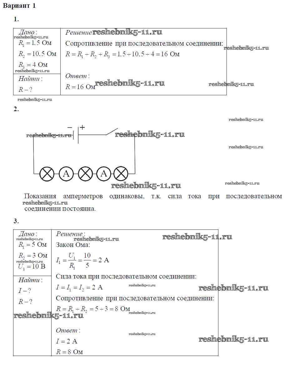 Готовая домашняя работа с ответами по Физике за 8 класс Марон Самостоятельные и контрольные работы Вертикаль Дрофа 2017 ФГОС - СР-№48 Вариант-1