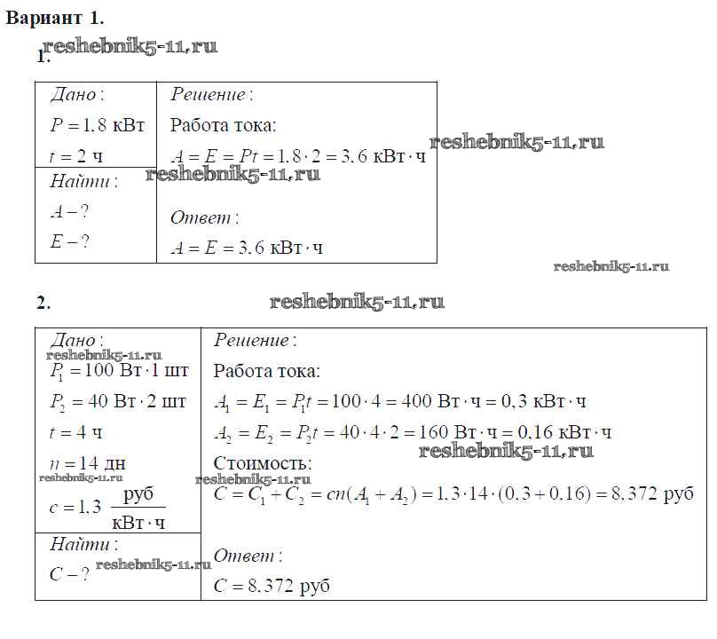 Готовая домашняя работа с ответами по Физике за 8 класс Марон Самостоятельные и контрольные работы Вертикаль Дрофа 2017 ФГОС - СР-№52 Вариант-1