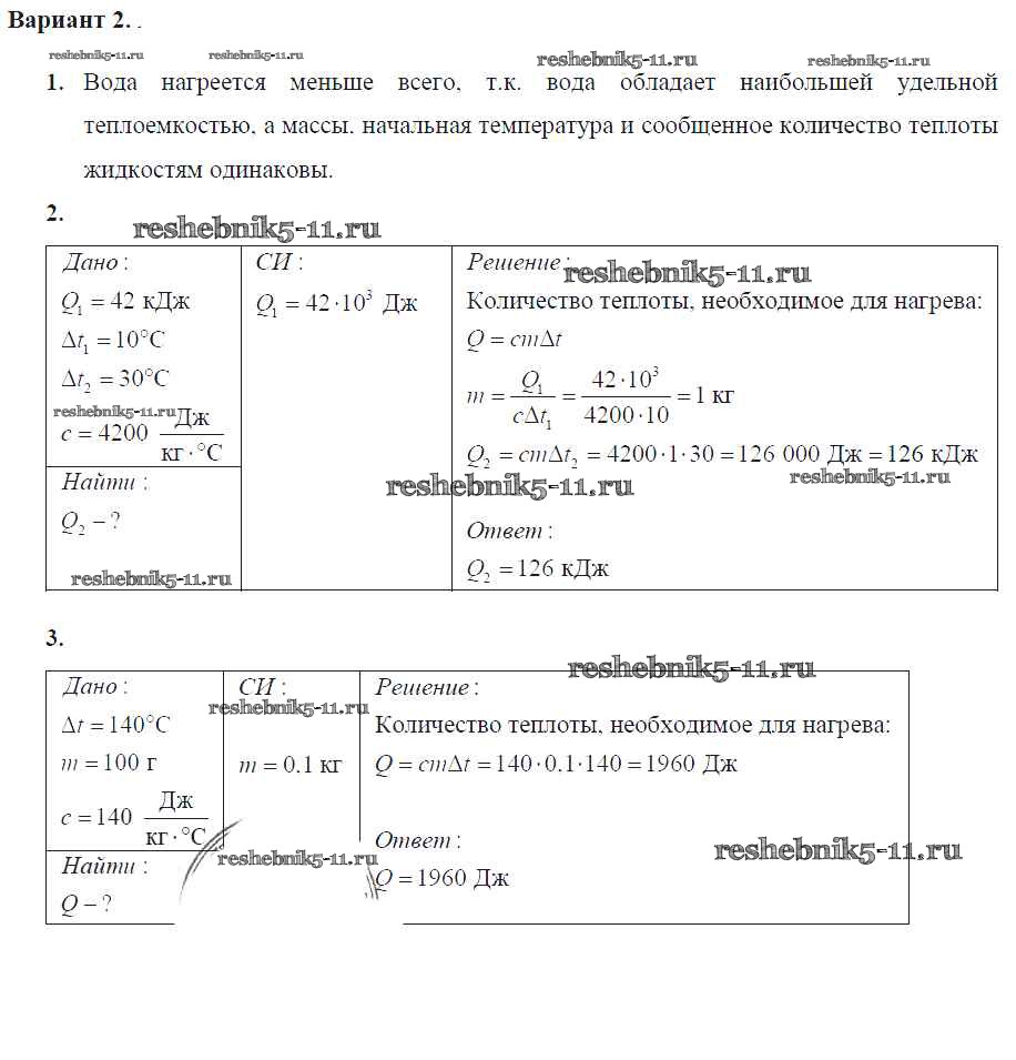 Готовая домашняя работа с ответами по Физике за 8 класс Марон Самостоятельные и контрольные работы Вертикаль Дрофа 2017 ФГОС - СР-№9 Вариант-2