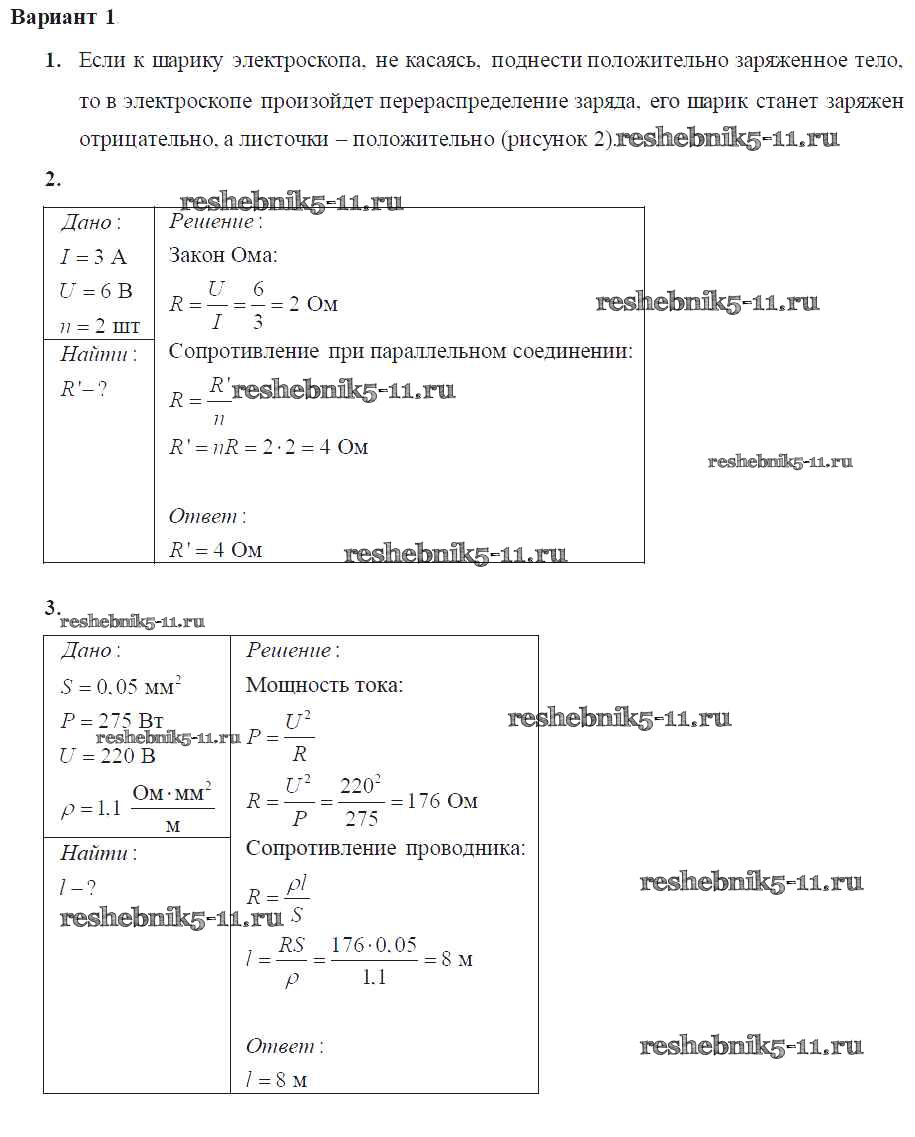 Готовая домашняя работа с ответами по Физике за 8 класс Марон Самостоятельные и контрольные работы Вертикаль Дрофа 2017 ФГОС - КР-№2 Вариант-1