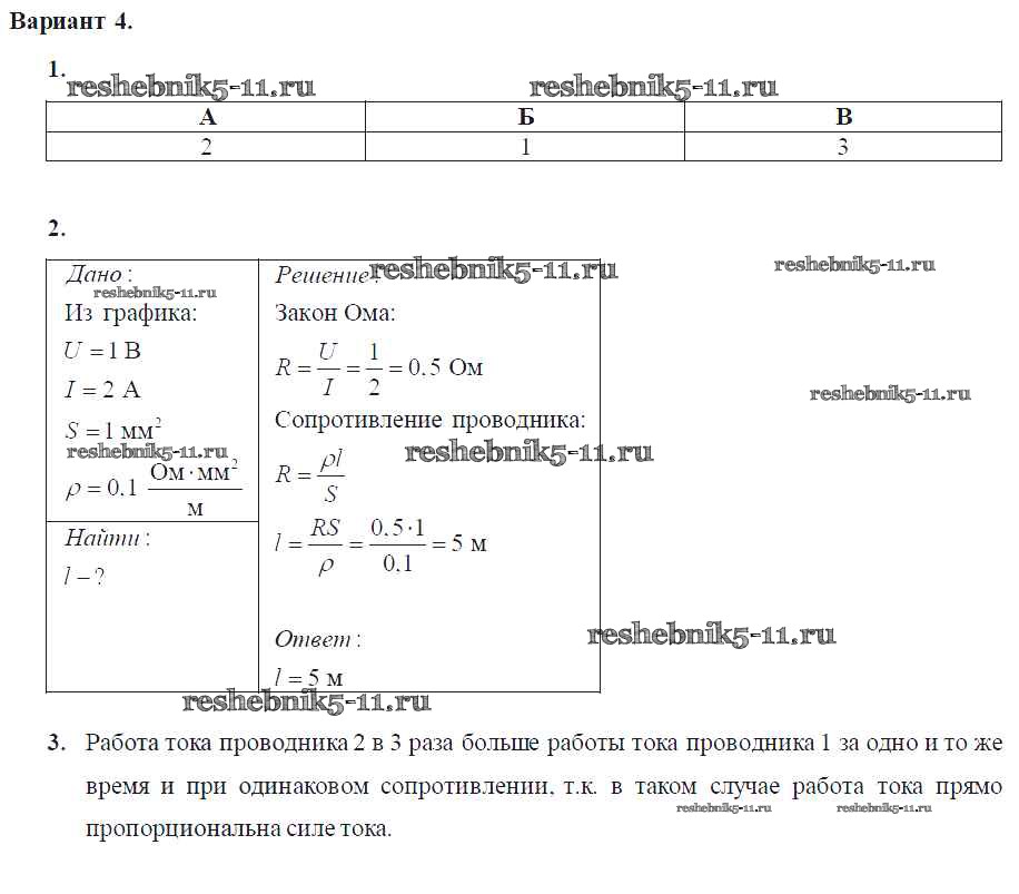 Готовая домашняя работа с ответами по Физике за 8 класс Марон Самостоятельные и контрольные работы Вертикаль Дрофа 2017 ФГОС - КР-№2 Вариант-4