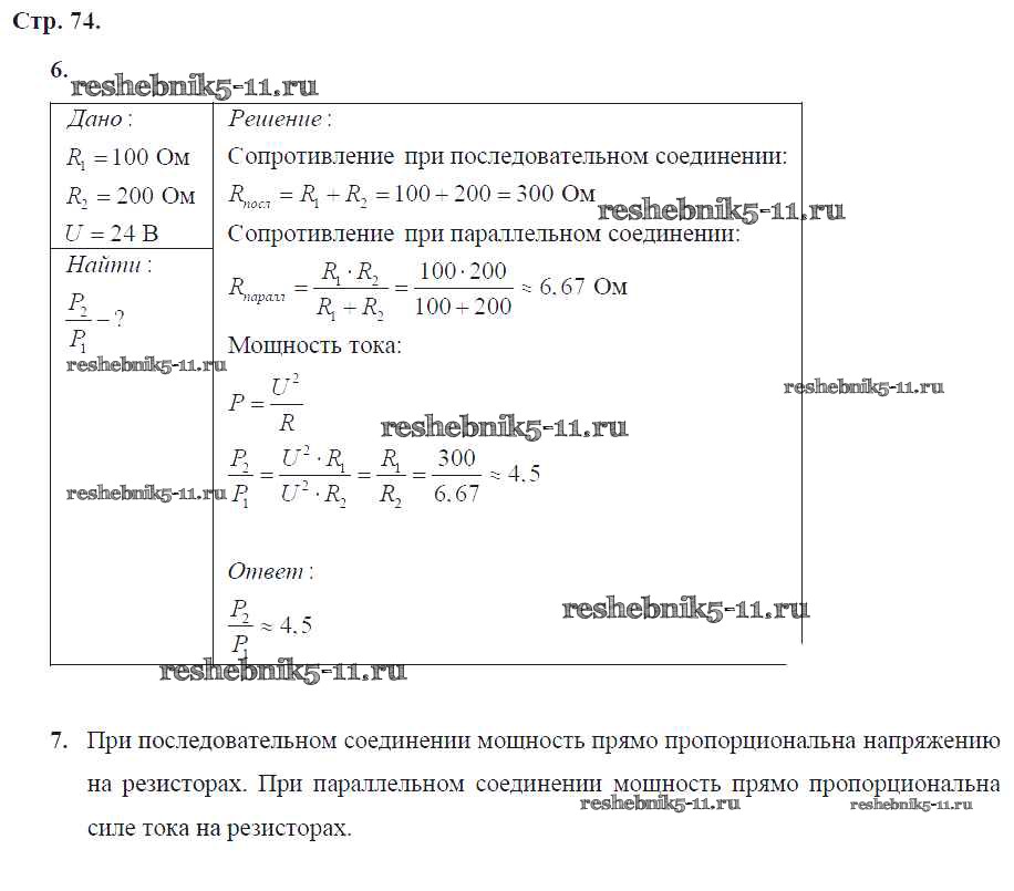 Готовая домашняя работа с ответами по Физике за 8 класс Артеменков, Белага, Воронцова Тетрадь-тренажер Сферы Просвещение 2012 ФГОС - Страницы тетради 74
